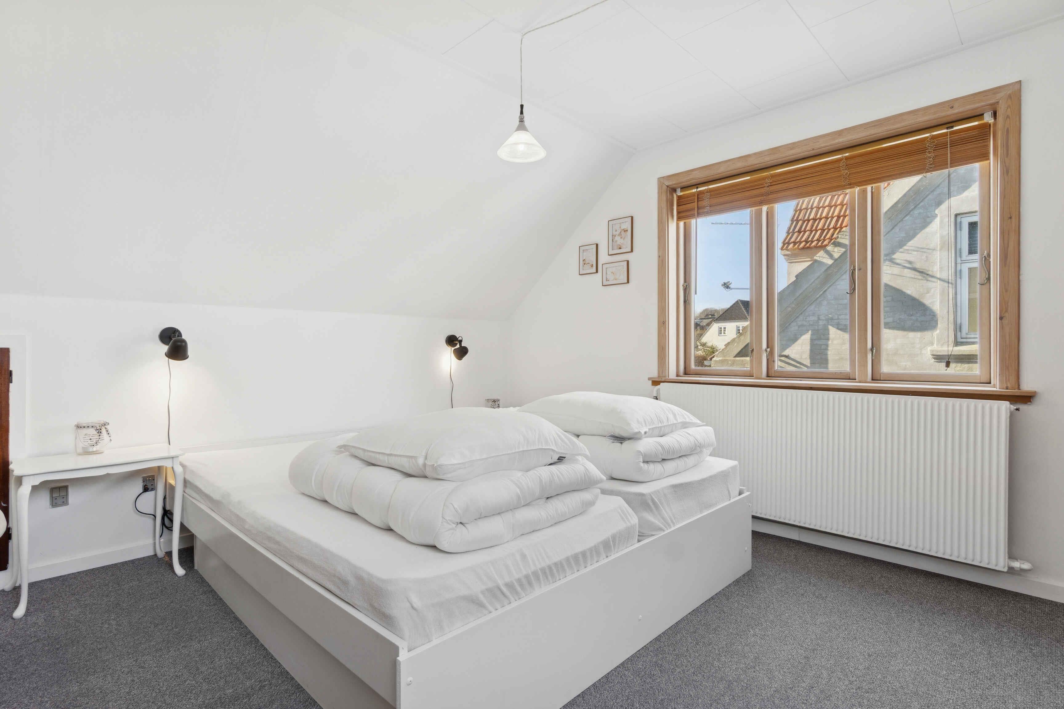 Dieses 109 m² große Stadthaus liegt nahe am Hafen und an der Küste und bietet vom ersten Stock aus Meerblick. Das Haus verfügt über drei Schlafzimmer und insgesamt fünf Schlafplätze, ideal für Paare und Familien. Im Erdgeschoss befinden sich der Eingang, das Esszimmer, die Küche, ein TV-Zimmer mit Holzofen, ein Schlafzimmer und ein Gäste-WC. Von hier aus gelangt man sowohl in das Obergeschoss als auch in den Keller. Im Obergeschoss befinden sich ein Schlafzimmer, ein kleineres Zimmer und ein Badezimmer. Von dort gibt es Zugang zu einer Veranda mit Blick auf den Hafen und die Ostsee. Der Keller hat eine geringe Deckenhöhe und beherbergt die technische Ausstattung sowie eine Waschmaschine. Das Haus wird mit Fernwärme beheizt, was eine stabile und bequeme Heizlösung das ganze Jahr über bietet. Es gibt Parkplätze für mehrere Autos sowie einen überdachten Bereich für Fahrräder. Die Umgebung bietet viele Erlebnisse für Urlaubsgäste. Der Hafen liegt nur wenige hundert Meter entfernt und verfügt über einen Badesteg, einen kleinen Strand sowie die Möglichkeit, Sauna und Badezuber zu nutzen. Im Ort gibt es einen Lebensmittelladen, eine Bäckerei, eine Pizzeria, eine Brauerei und ein Restaurant. Die Nordküste zwischen Gudhjem und Allinge bietet Felsküsten, Wege und kleine Hafenorte. Sie eignet sich hervorragend zum Wandern, Radfahren und für Touren entlang des Wassers. Nahegelegene Städte bieten Galerien, Räuchereien, Märkte und gute Ausflugsmöglichkeiten. Die wechselnde Natur schafft eine besondere Urlaubsatmosphäre. Mit nur 200 Metern bis zum Meer beginnt der Tag leicht mit einem Spaziergang durch das Hafenmilieu oder einem Bad in der Ostsee. Das Haus ist ein praktischer Ausgangspunkt für einen Urlaub mit Aktivität und Erholung.