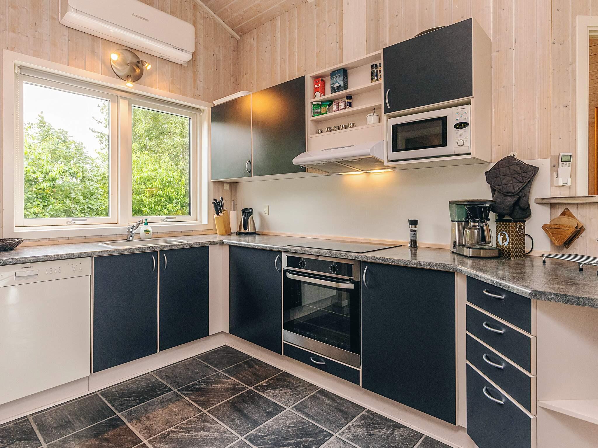 Ansprechendes und modern eingerichtetes Ferienhaus auf einem offenen Grundstück und ca. 5 Min. vom Wasser entfernt gelegen. Zu dem Haus gehört ein kombinierter Aufenthalts- und Küchenbereich, drei Schlafzimmer und ein Bad. Vom Wohnzimmer gelangen Sie auf die Terrasse, wo Sie gemütliche Grillabende verbringen können.
