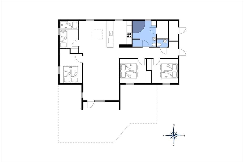 Das 99 m² große Ferienhaus wurde 2020 renoviert, und die hellen Räume erscheinen freundlich und gepflegt. Dies gilt sowohl für das Badezimmer, die Gästetoilette, als auch für die vier Schlafzimmer, die insgesamt Schlafplätze für acht Personen bereitstellen - und natürlich für den großen Wohnbereich, ein schöner Aufenthaltsraum mit Brennofen, offenem Küchenbereich und fantastischem Lichteinfall. Hier gibt es genügend Platz, um sich zu entspannen und es sich gemeinsam gemütlich zu machen. Für Unterhaltung sorgen ein Fernsehgerät, ein Radio und ein Nintendospiel. Ein weiteres Vergnügen ist es, die Sauna und den Whirlpool zu benutzen, die sich in dem großen Badezimmer befinden, welches ebenfalls mit Waschmaschine, Trockner und Fußbodenheizung ausgestattet ist.