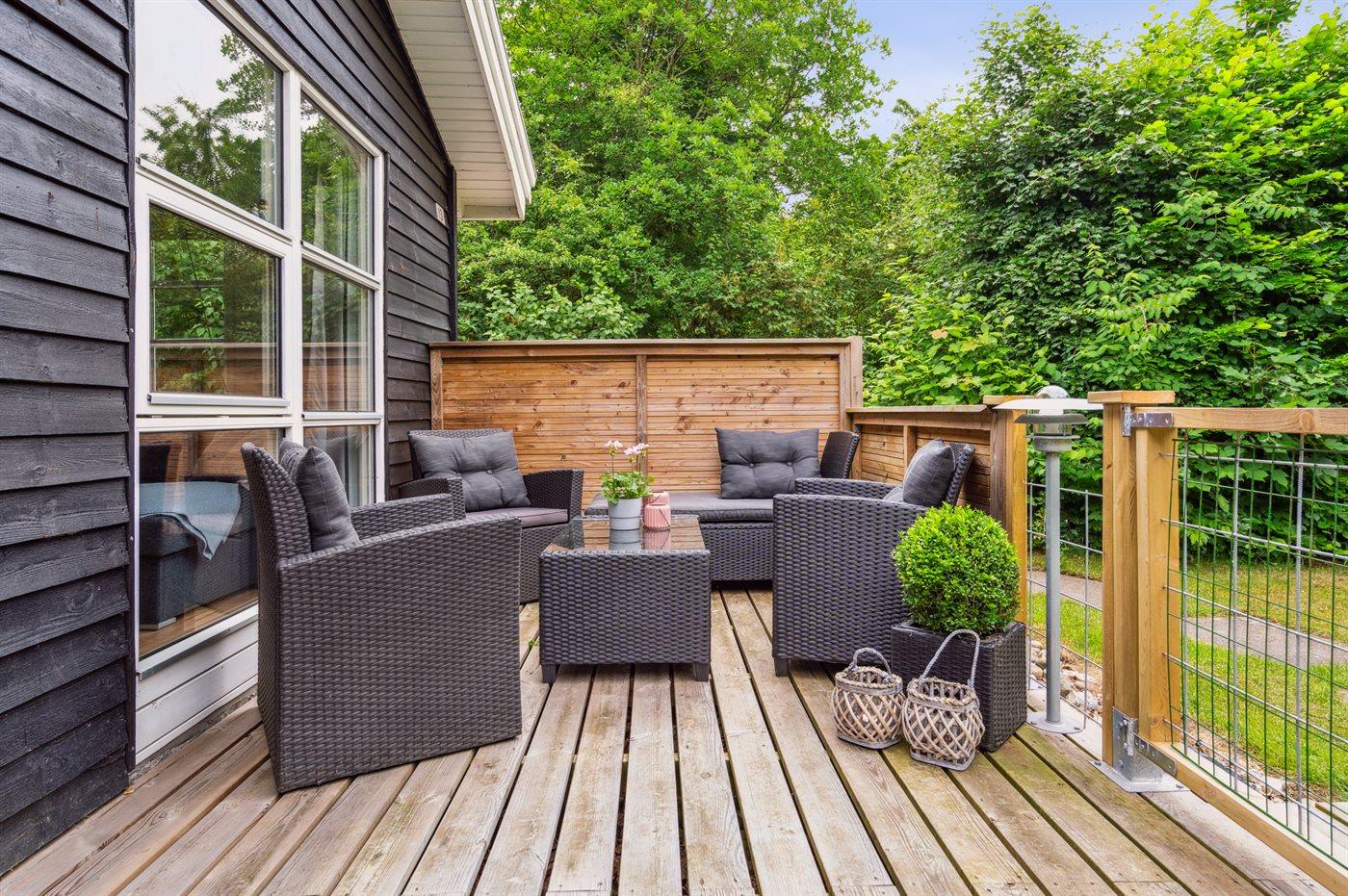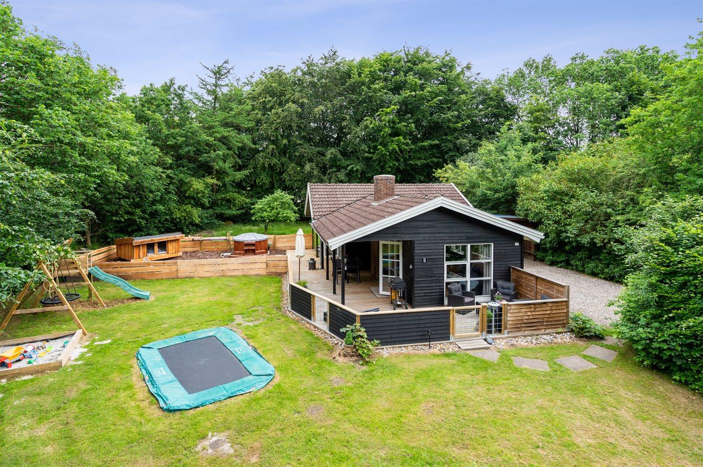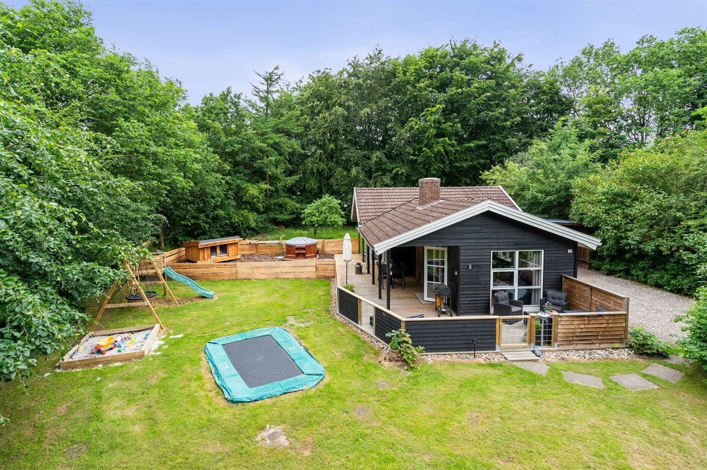 Ein gemütliches Sommerhaus in Toftlund mit Terrasse, Whirlpool und kinderfreundlicher Ausstattung für erholsame Ferien.