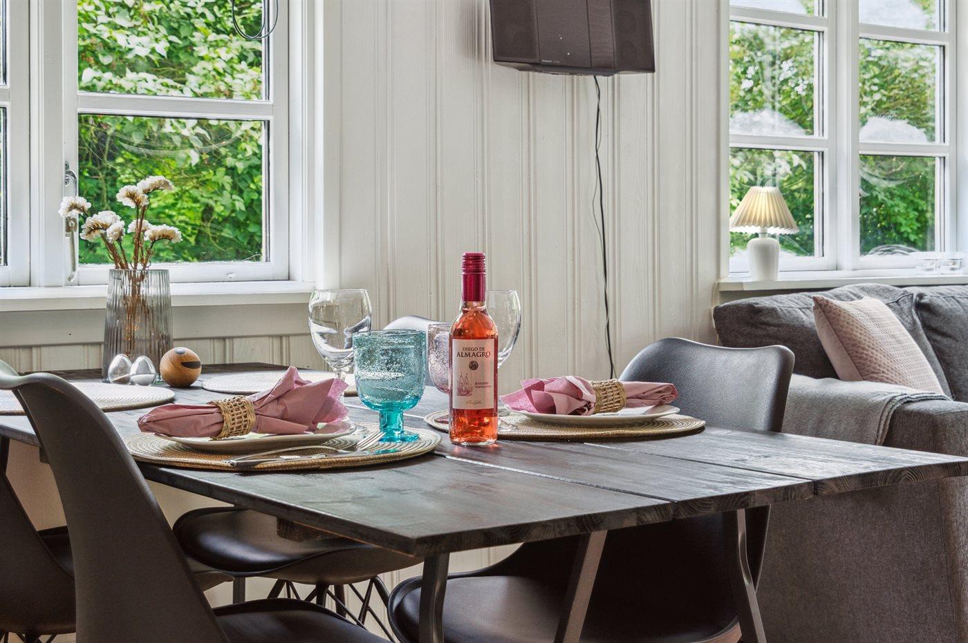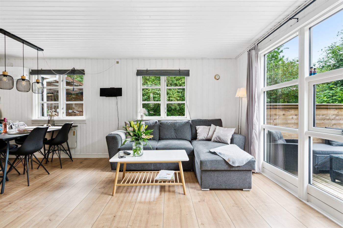 Ein schönes, kleines Sommerhaus, das einladend hervor tritt und gut eingerichtet ist. Hier finden Sie eine Wohnküche, von der aus Sie direkt auf die schöne, teilweise überdachte, geschlossene und nach Südwesten ausgerichtete Terrasse gelangen. Das Haus liegt nicht weit von den Aktivitäten der Umgebung wie z.B. eine große Schwimmhalle und einen Angelsee entfernt. Wir wünschen Ihnen einen schönen Urlaub!