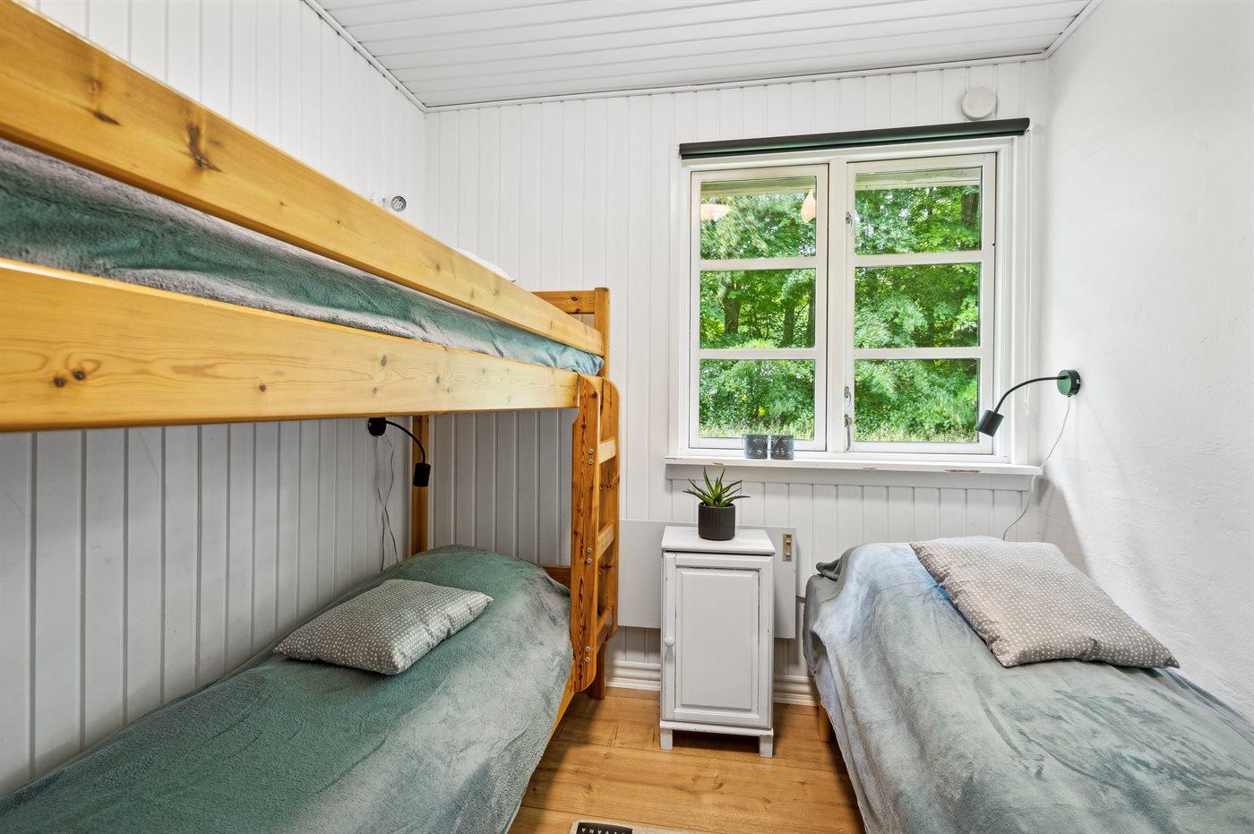 Die Schlafplätze verteilen sich auf 2 Schlafräume. 2 Schlafplätze in einem Doppelbett.1 Schlafplatz in einem Einzelbett. 2 Schlafplätze in einem Etagenbett. Ferner steht ein Kinderbett zur Verfügung.