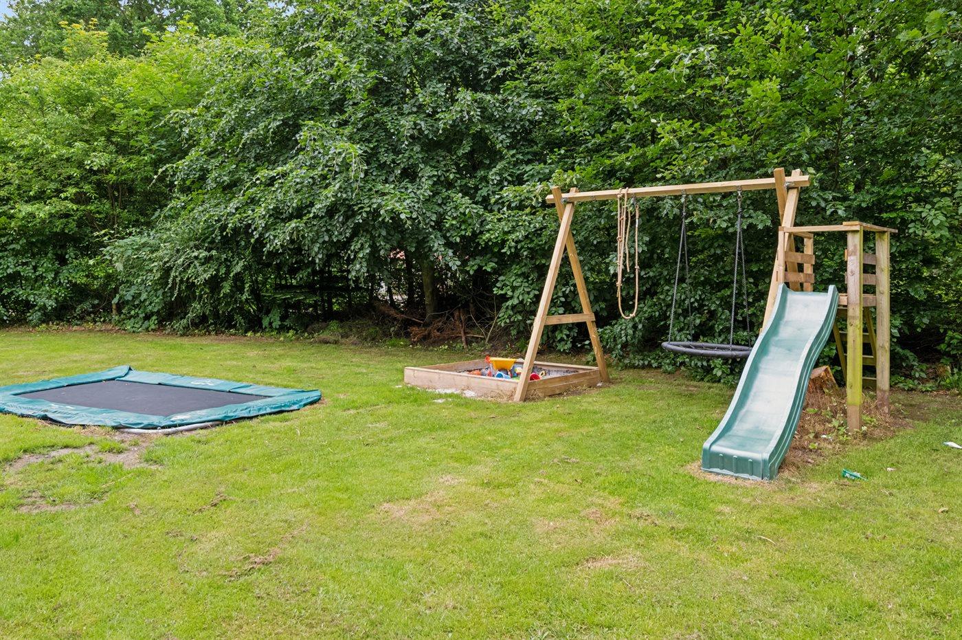 Die Ferienunterkunft liegt auf einem 876 m² großen Naturgrundstück. Die Entfernung zum Meer beträgt 30000 m.Die Entfernung zum Wattenmeer beträgt 20000 m. Die Entfernung zu einem See beträgt 100 m. Die nächste Einkaufsmöglichkeit liegt 900 m entfernt. In einem Abstand von 1500 m gibt es einen Golfplatz. Es steht ein zum Teil überdachtes und geschlossenes Terrassenareal zur Verfügung. Schaukel. Sandkasten. Trampolin. Rutsche. Die Entfernung zu einem Spielplatz beträgt 700 m. Es steht ein Grill zur Verfügung. Es steht ein Carport zur Verfügung. Parkplatz auf dem Grundstück.