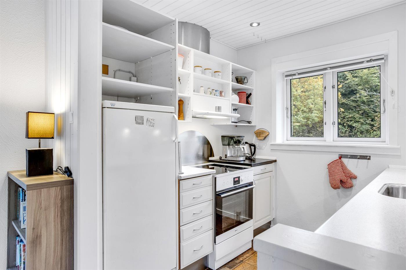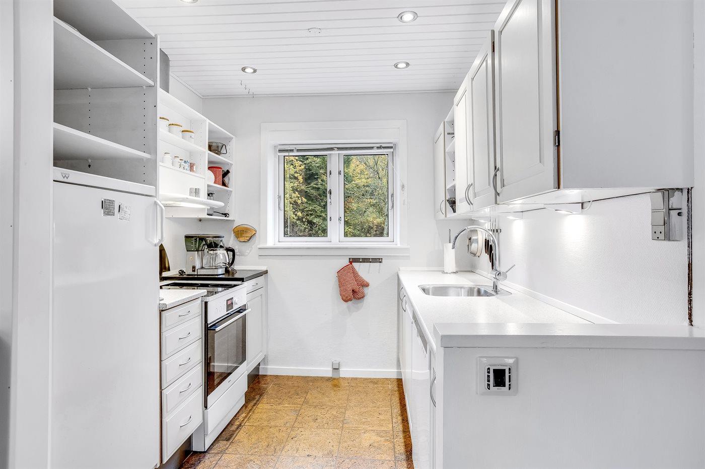 Die Küche ist mit Kühlschrank ausgestattet. Außerdem gibt es 4 Keramik-Kochfelder, Umluftofen sowie Geschirrspüler. Fußbodenheizung in der Küche.