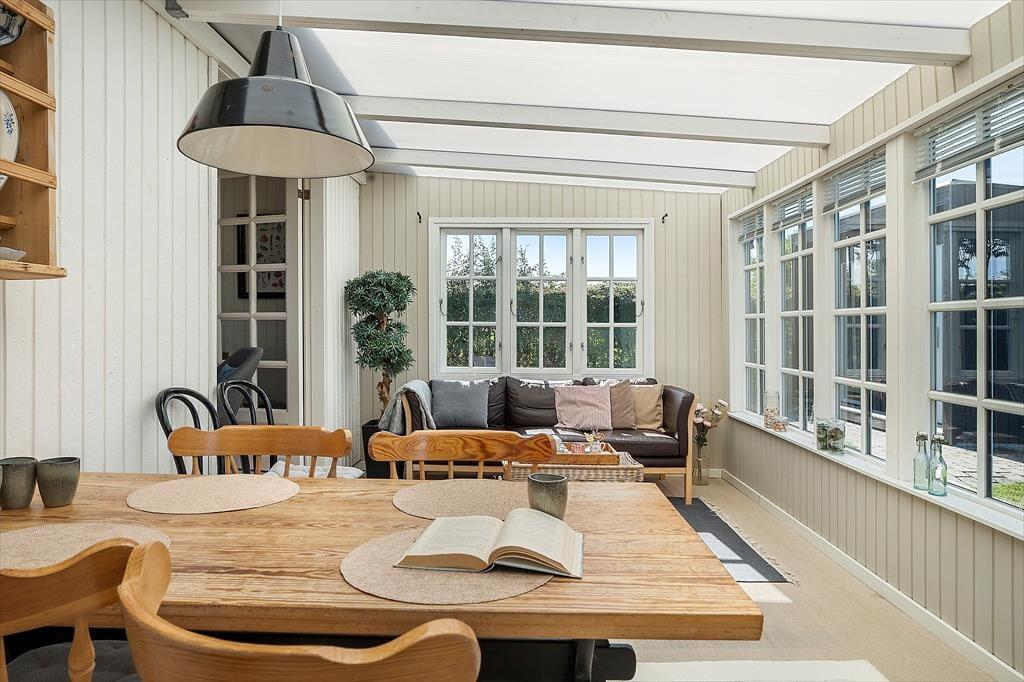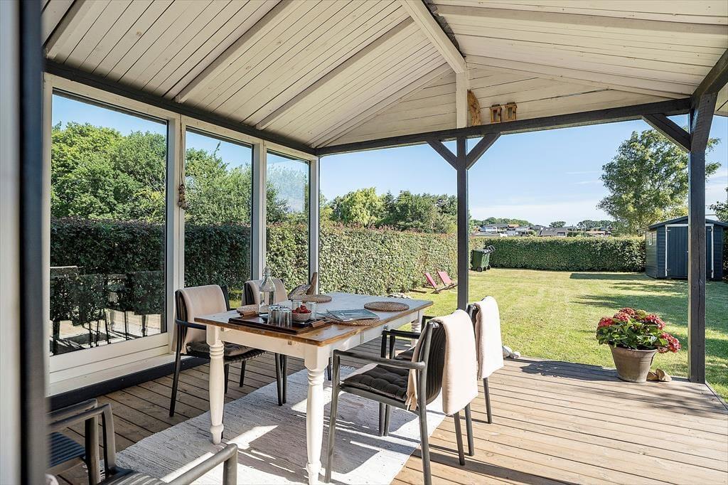 Dieses einladende, klassische Ferienhaus bietet ein echtes Urlaubserlebnis mit Küche, gemütlichen Schlafzimmern, Badezimmer sowie einem einladenden Wohnzimmer und Wintergarten. Die großen Fenster im Wintergarten lassen das natürliche Licht hereinströmen und schaffen eine helle und offene Atmosphäre, die zu Ruhe und Entspannung einlädt. Hier kannst du es dir mit einem guten Buch und einer köstlichen Tasse Kaffee richtig gemütlich machen. Auch auf der überdachten Terrasse kannst du deine Mahlzeiten genießen. Alle Räume sind mit Fokus auf heimelige Gemütlichkeit und Urlaubsentspannung eingerichtet, sodass du den Alltagsstress in der friedlichen Umgebung hinter dir lassen kannst.