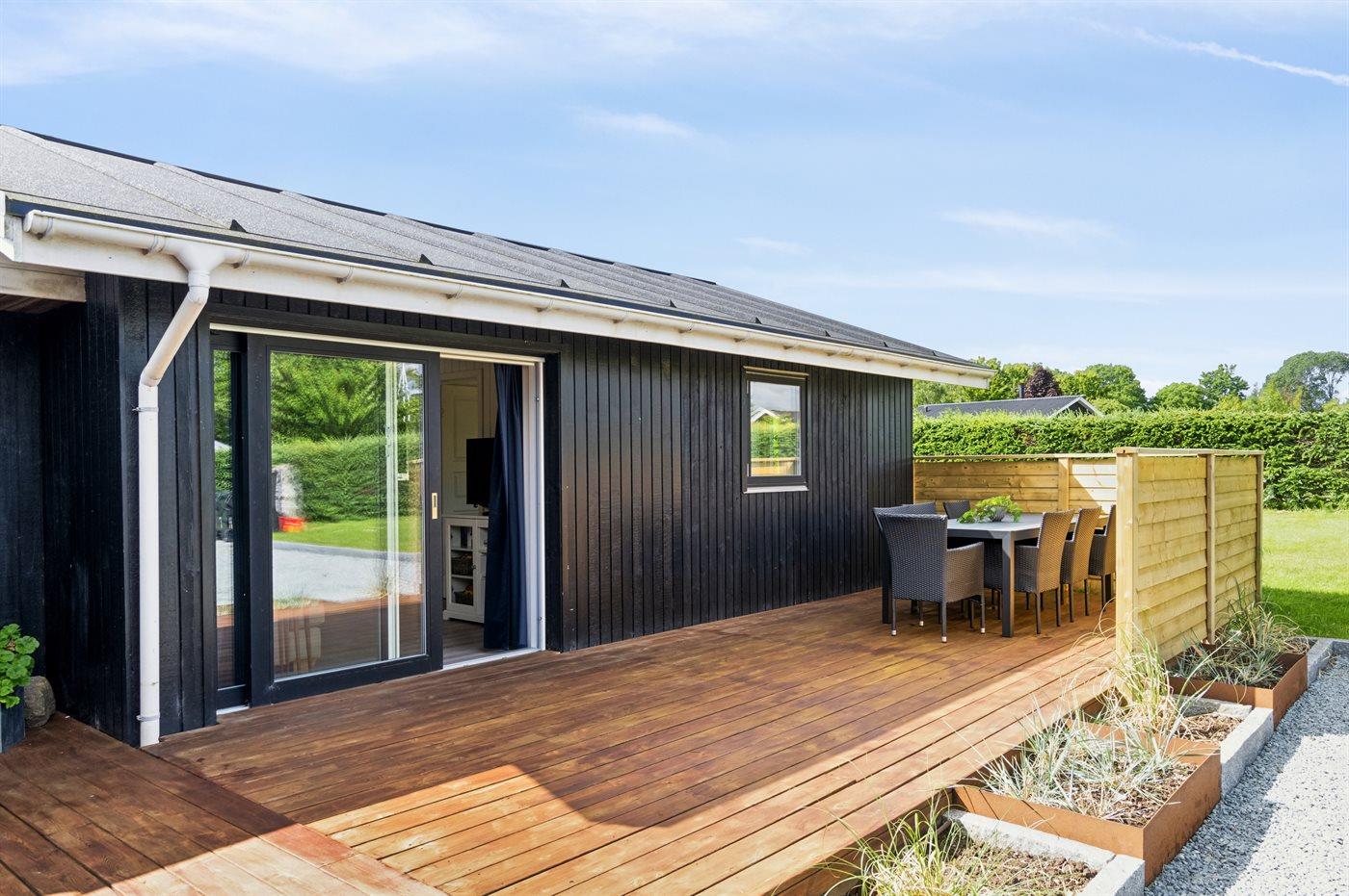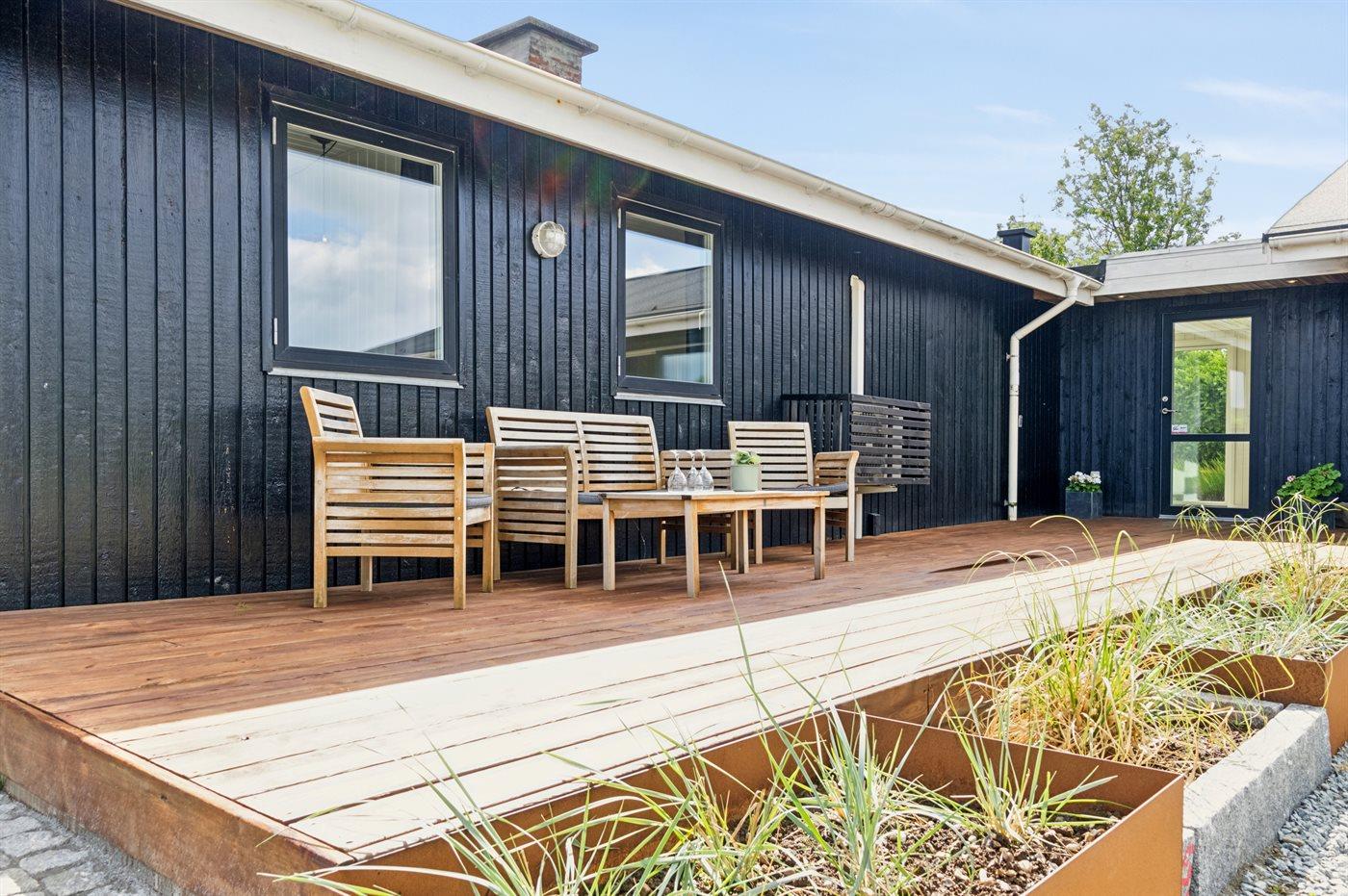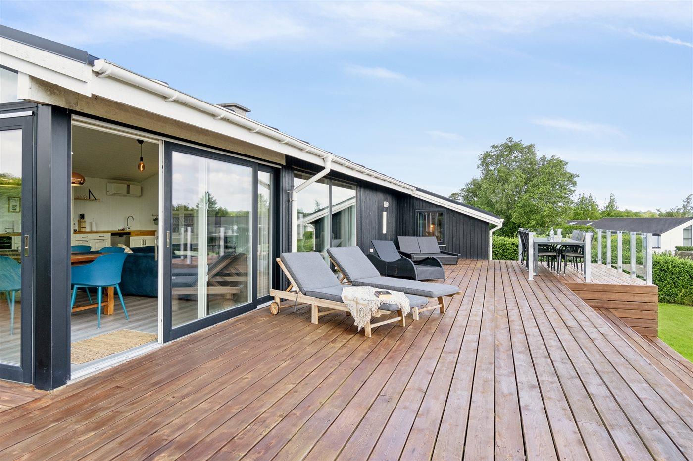 Das Ferienhaus verfügt über schöne Terrassenbereiche, die sich auf beiden Seiten des Hauses erstrecken, sodass es immer möglich ist, eine windgeschützte Ecke zu finden, um die Sonne zu genießen.