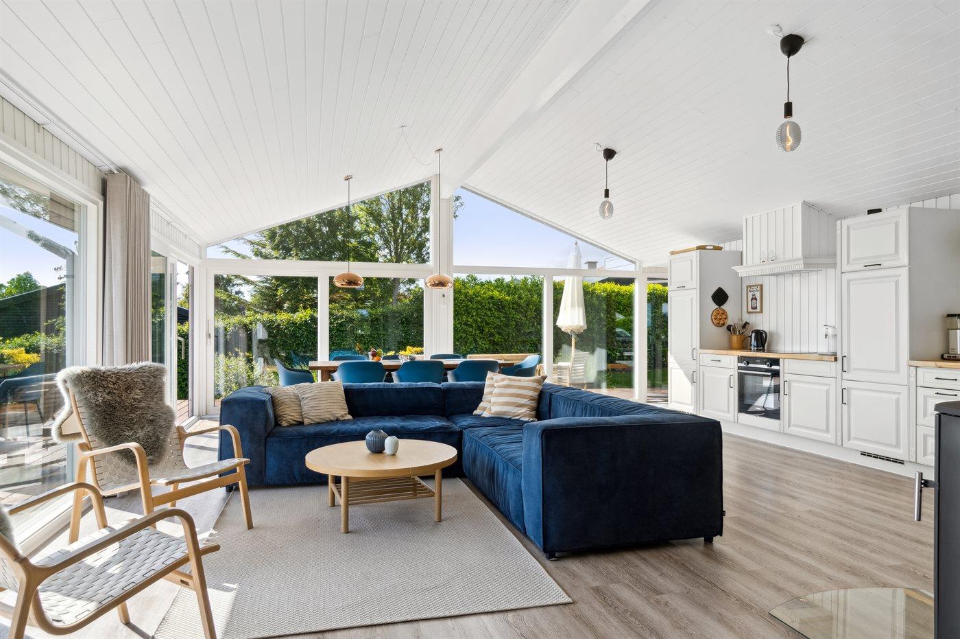 Modernisiertes Ferienhaus nahe Kattegat mit Meerblick, Sauna und großem Garten für entspannte Urlaubstage.
