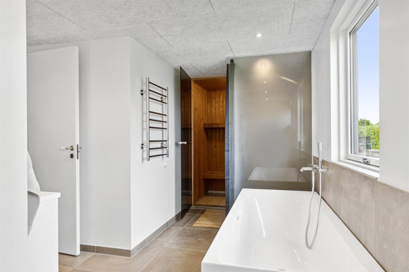 Es gibt 2 Badezimmer mit Duschnische und 2 Toiletten. Fußbodenheizung in 2 Badezimmern.. Badewanne. Es steht eine Sauna zur Verfügung in der Sie sich so richtig entspannen können.