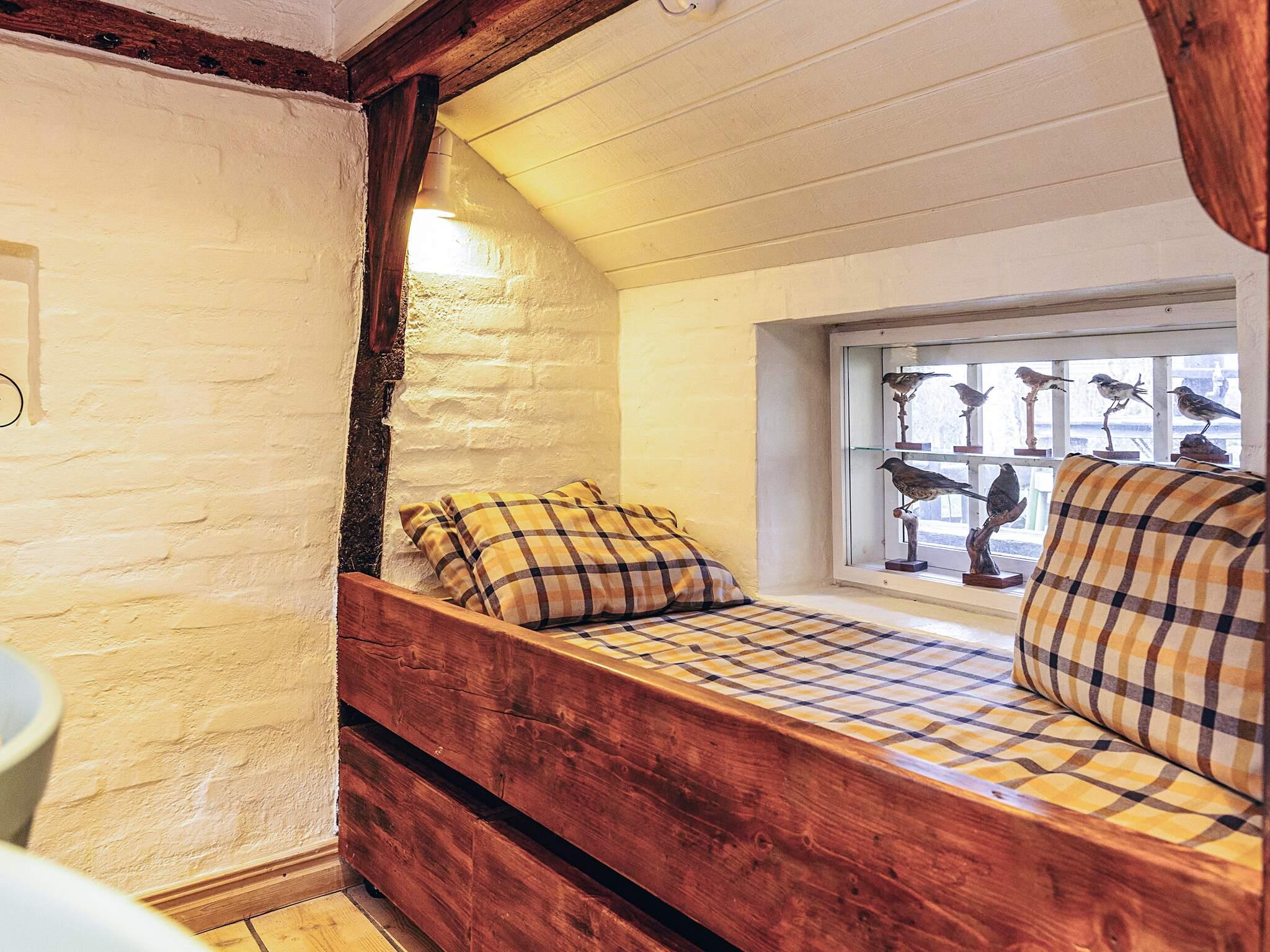 Das Fachwerkhaus verströmt viel nostalgischen Charme und gemütliches Ambiente. Die Raumhöhe ist aufgrund der alten Dachbalken eingeschränkt. Eines der Doppelbetten kann nur vom Fußende aus "betreten" werden, das zweite nur von der Längsseite (siehe Fotos). Außerdem gemütlicher Alkoven neben dem Essbereich, vorwiegend für Kinder geeignet. TV ohne Empfang, nur für das Streamen eigener Dienste per WLAN gedacht.