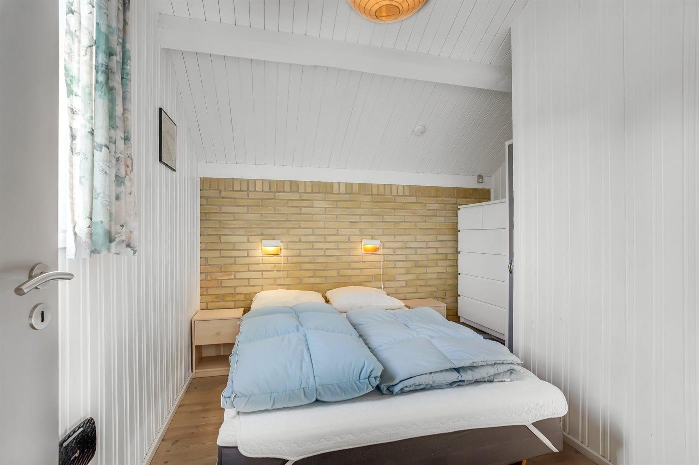 Die Schlafplätze verteilen sich auf 2 Schlafräume. 2 Schlafplätze in einem Doppelbett. 2 Schlafplätze in Einzelbetten. Ferner steht ein Kinderbett zur Verfügung.
