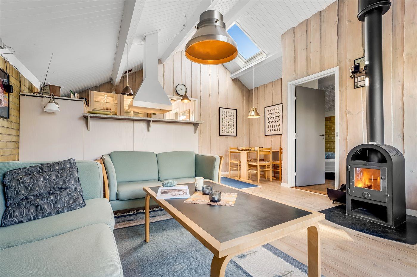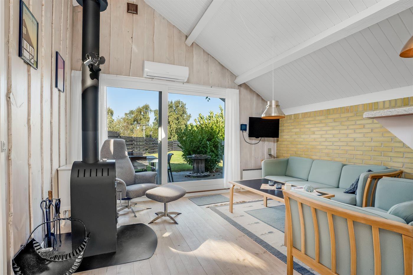 Gemütliches Ferienhaus nahe Grønsund mit Kamin und moderner Wärmepumpe für entspannte Tage am Hafen.