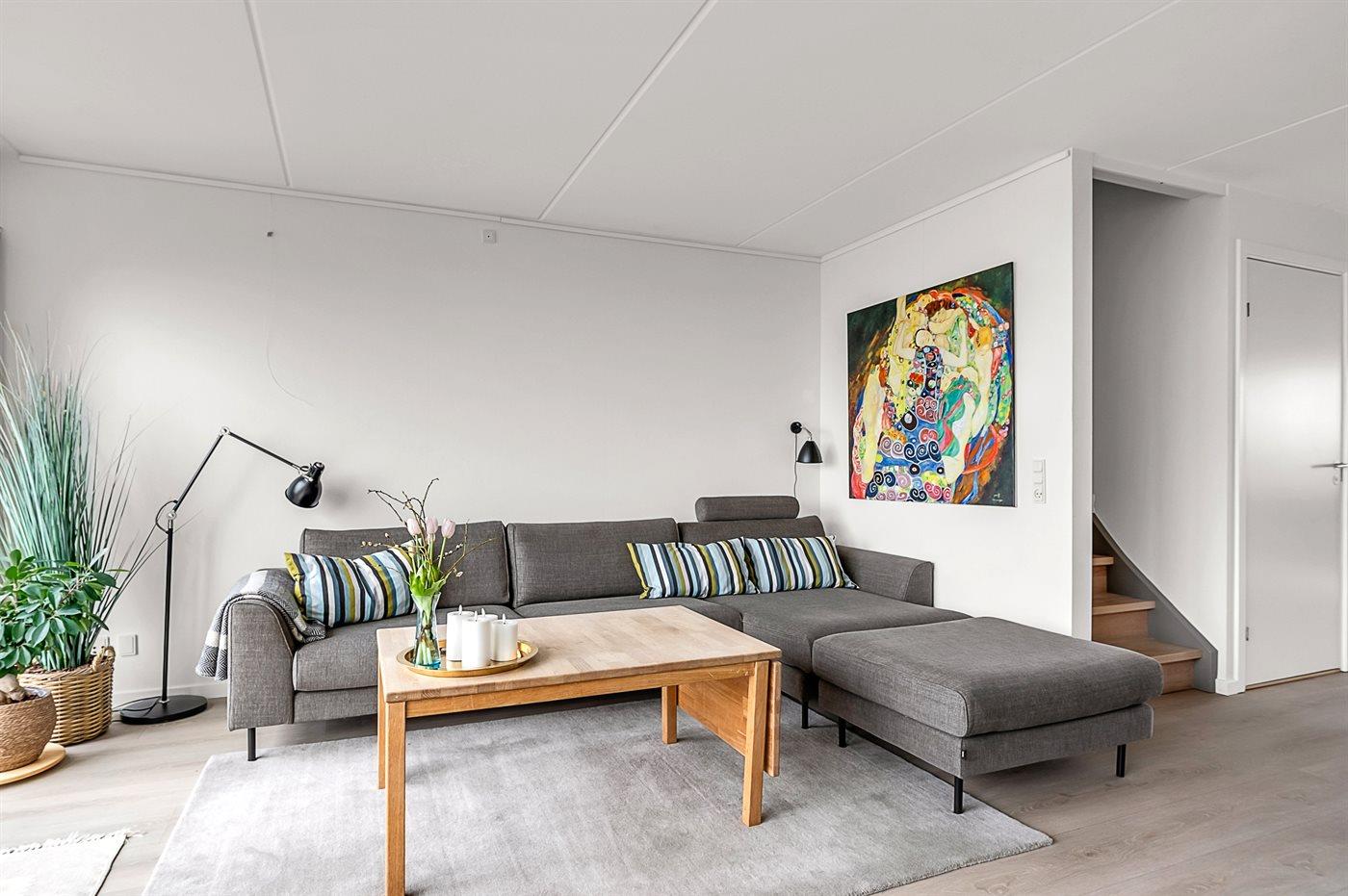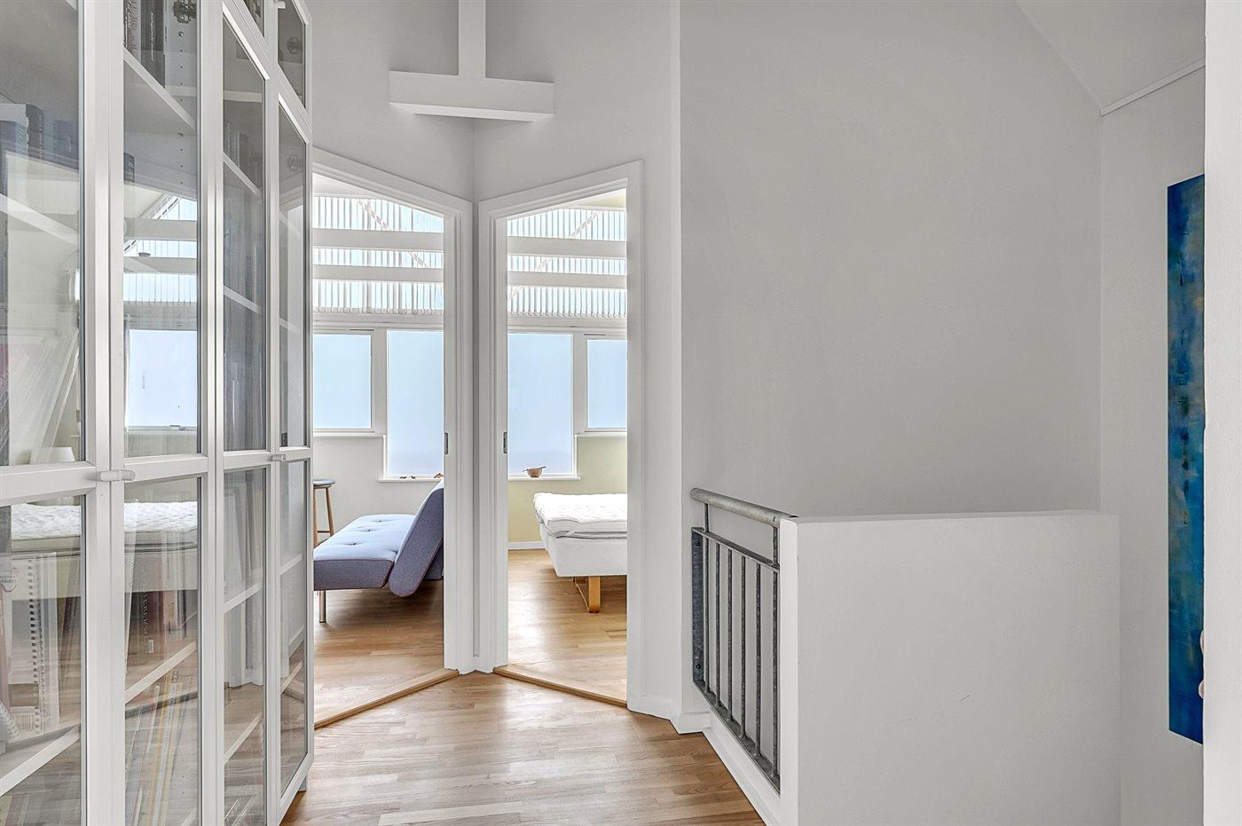 Das Haus erstreckt sich über zwei Etagen: Im Erdgeschoss befinden sich Wohnzimmer, Wohnküche sowie Toilette/Dusch, und im Obergeschoss liegen die Schlafzimmer sowie ein großes Badezimmer mit Whirlpool.
