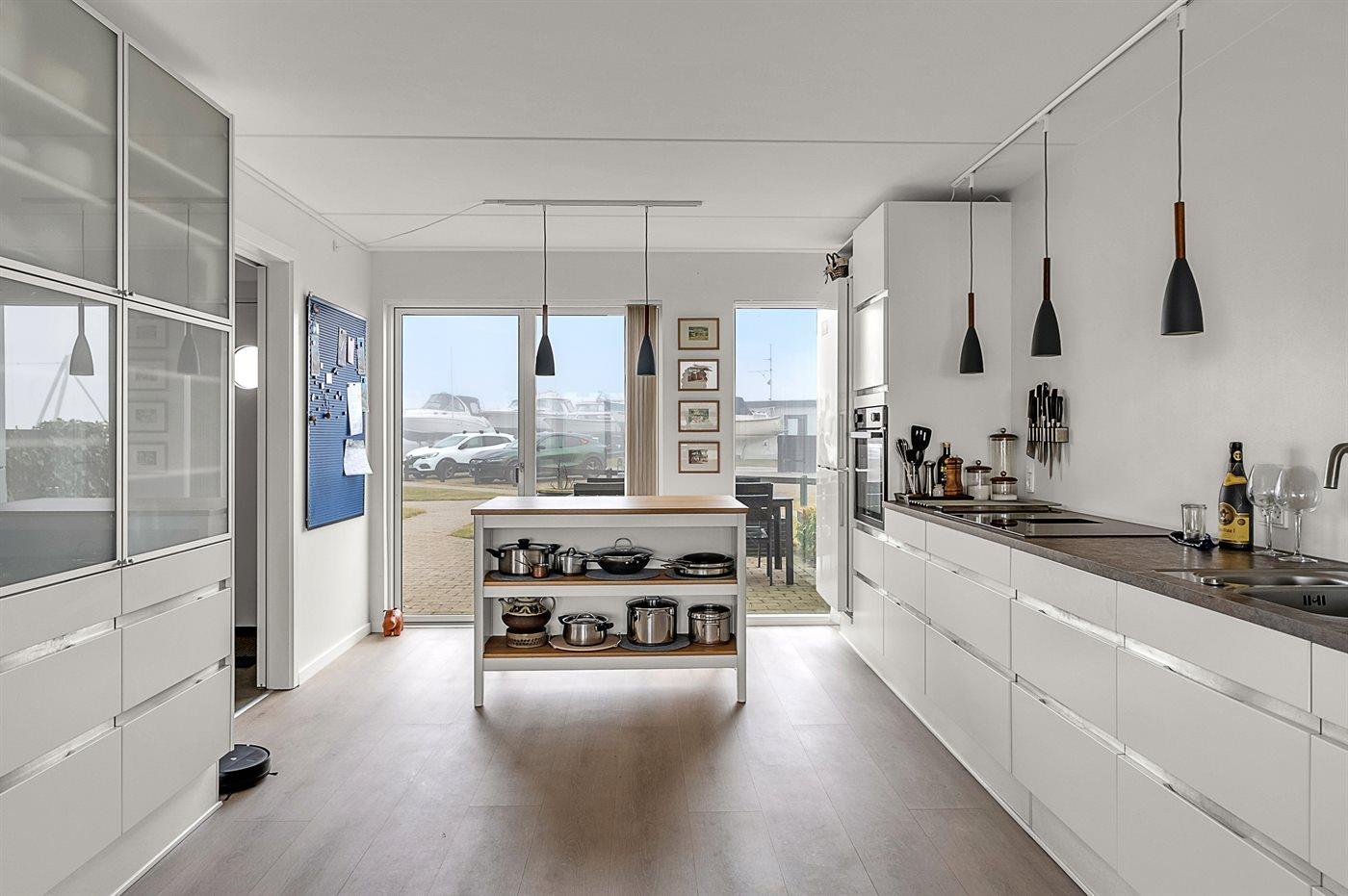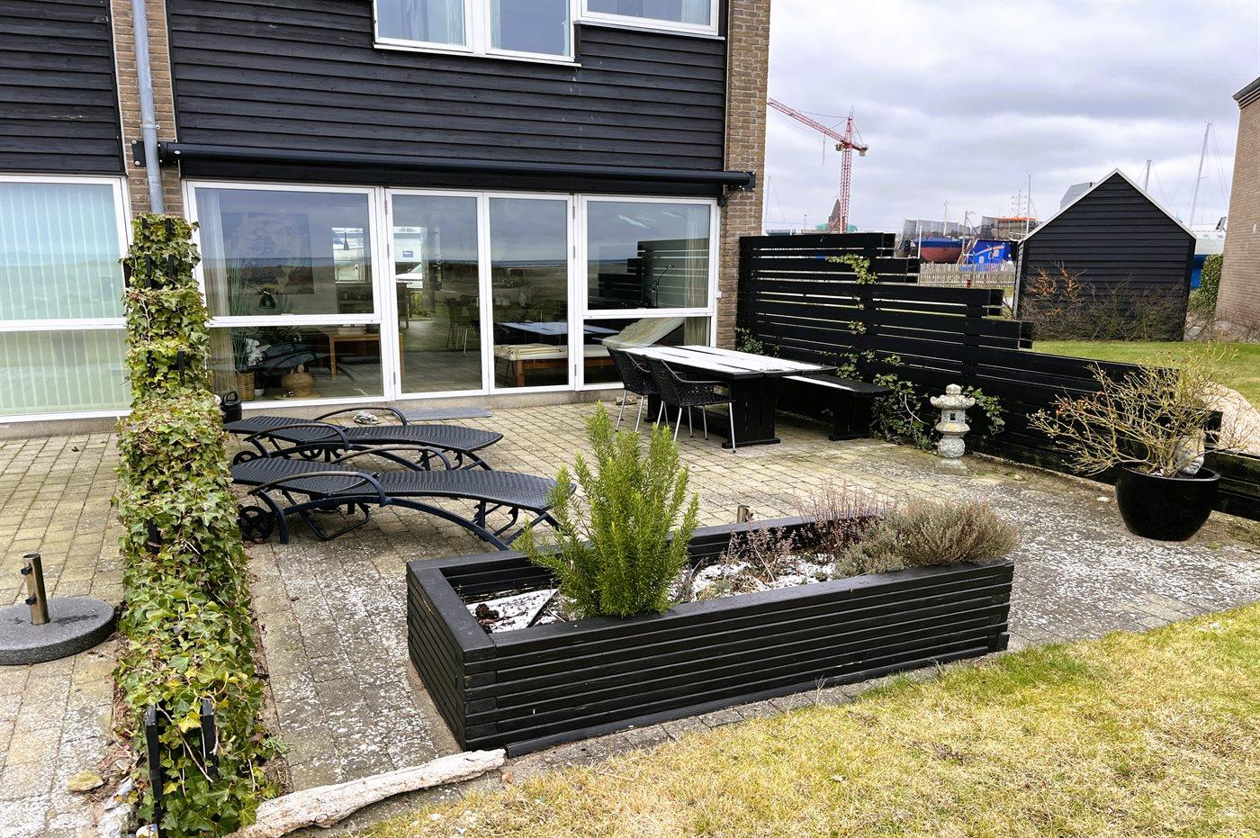 Vom Wohnzimmer aus habt ihr Zugang zu einer herrlichen, nach Südwesten ausgerichteten Terrasse mit Blick auf das Wasser. Auf der anderen Seite befindet sich eine Terrasse zum Yachthafen hin, wo ihr die Morgensonne genießen könnt.