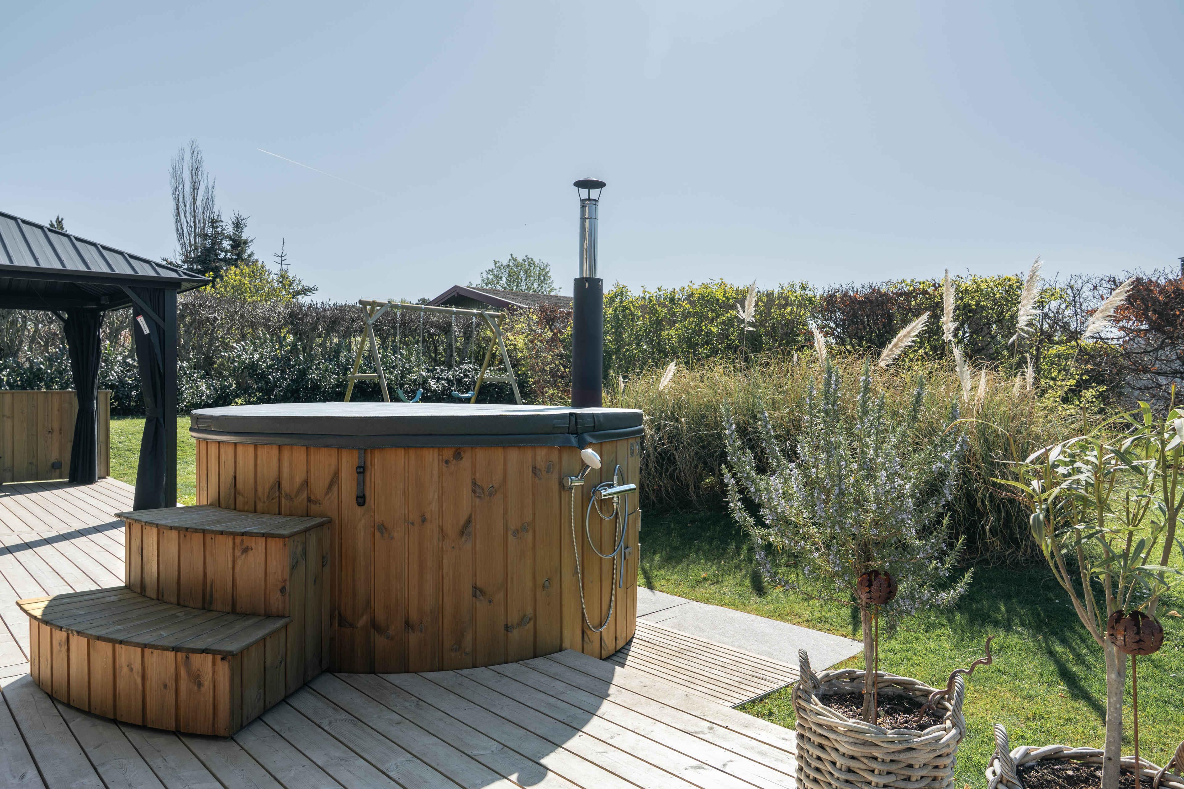 Schönes Sommerhaus für Familie mit Kindern, 3 Generationen und den Urlaub zu zweit Nahe am Strand und der Natur Außenküche, dusche, Wildnisbad, 2 Badezimmer, 3 Schlafzimmer Keine Haustiere Spielzeug Essbereiche im Freien, Sonnenliegen und Lounge-Sets