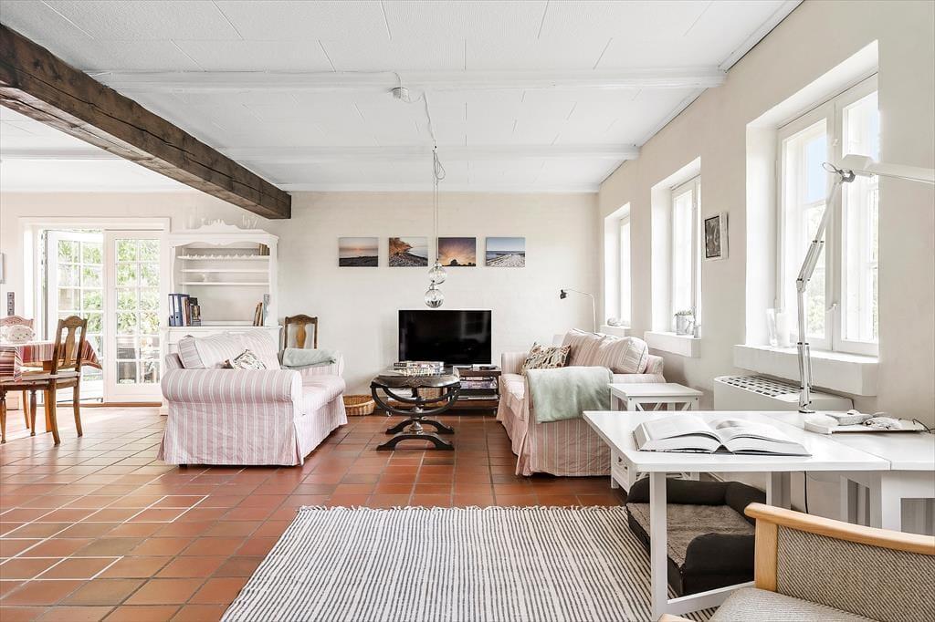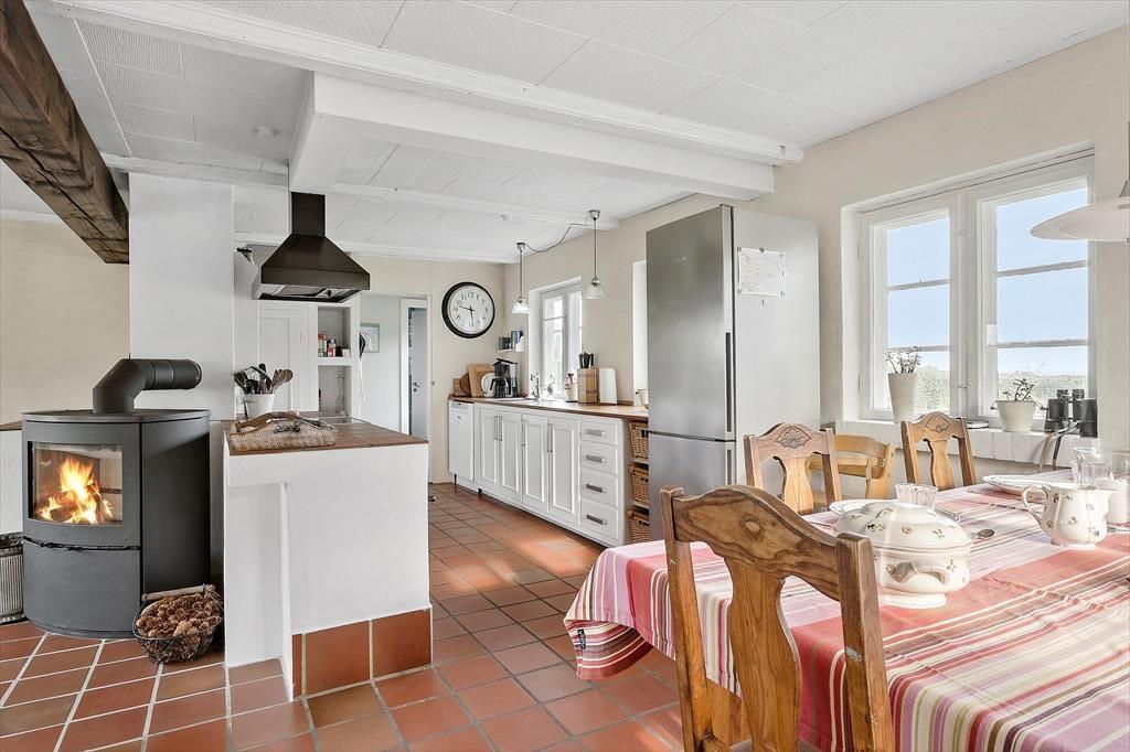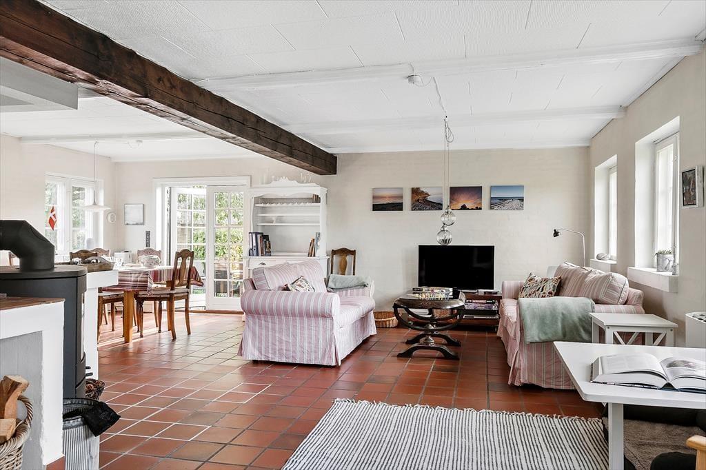 Das Ferienhaus befindet sich in landschaftlich schöner Umgebung. Sie wohnen am Ende einer Sackgasse vor offenen Feldern. Auf der Terrasse werden Sie mit Morgen- und Nachmittagssonne verwöhnt und genießen dabei den Ausblick in Richtung Meer. Der schöne Garten wird durch Obstbäume geprägt. Für Ihre Kinder stehen eine Schaukel und ein Trampolin bereit. Innerhalb kurzer Zeit erreichen Sie den Wald und den Strand. Angler, die in Besitz einer gültigen Angelerlaubnis sind, können an der Küste ihr Glück versuchen. Der Fang kann anschließend am Fischreinigungsplatz auf dem Grundstück gereinigt werden.