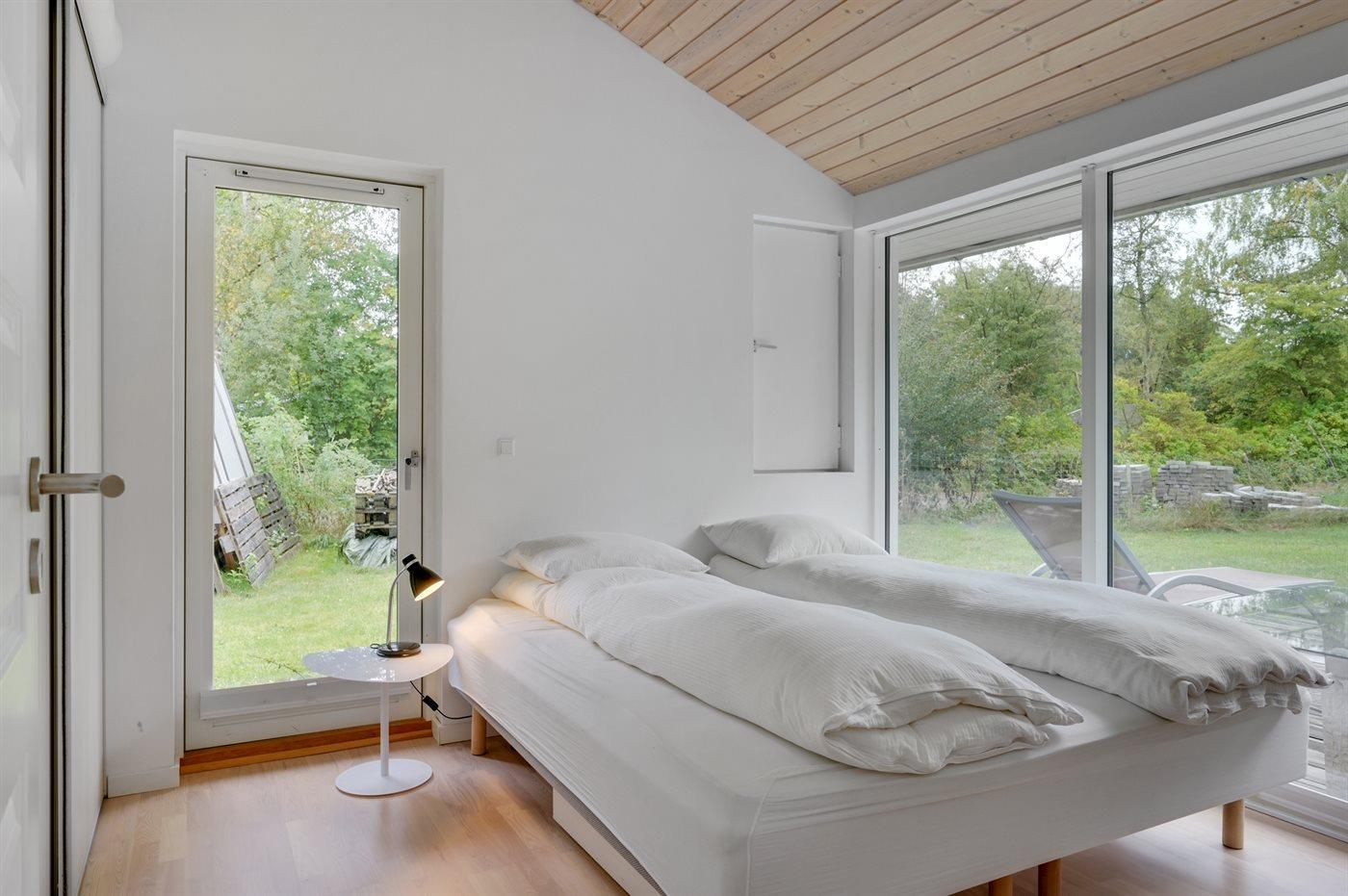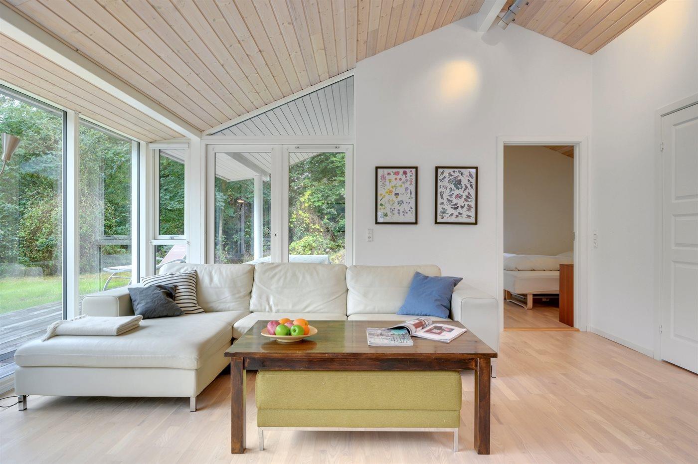 Modernes Ferienhaus in Dänemark mit lichtdurchfluteten Räumen und großem Garten für erholsame Tage.