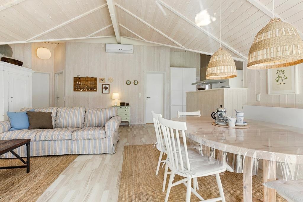 Treten Sie ein in unser charmantes Ferienhaus, in dem sich das Urlaubsgefühl sofort einstellt. Hier ist Platz für Ruhe und Familienzusammenhalt. Die helle und einladende Einrichtung schafft eine entspannte Atmosphäre, in der der Alltagsstress schnell verschwindet. Das Haus bietet ein geräumiges Wohnzimmer mit großen Fenstern, die viel Sonnenlicht hereinlassen, während der Holzofen an kühlen Abenden für Gemütlichkeit sorgt. Die Schlafzimmer sind gut eingerichtet und bieten der ganzen Familie Komfort und Ruhe.