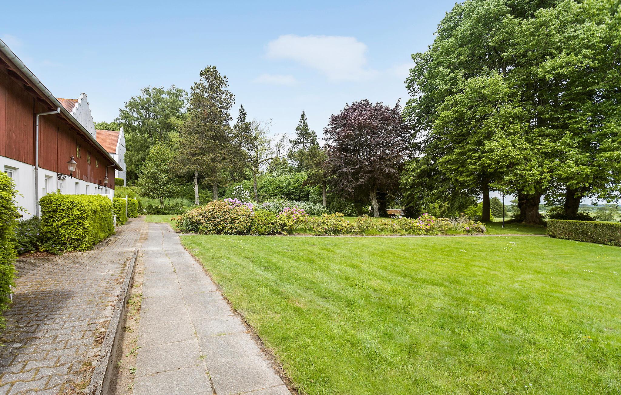 Entspannen Sie in diesem renovierten Ferienhaus auf dem historischen Kokkedal Schloss mit privater Terrasse und herrlichem Naturblick.