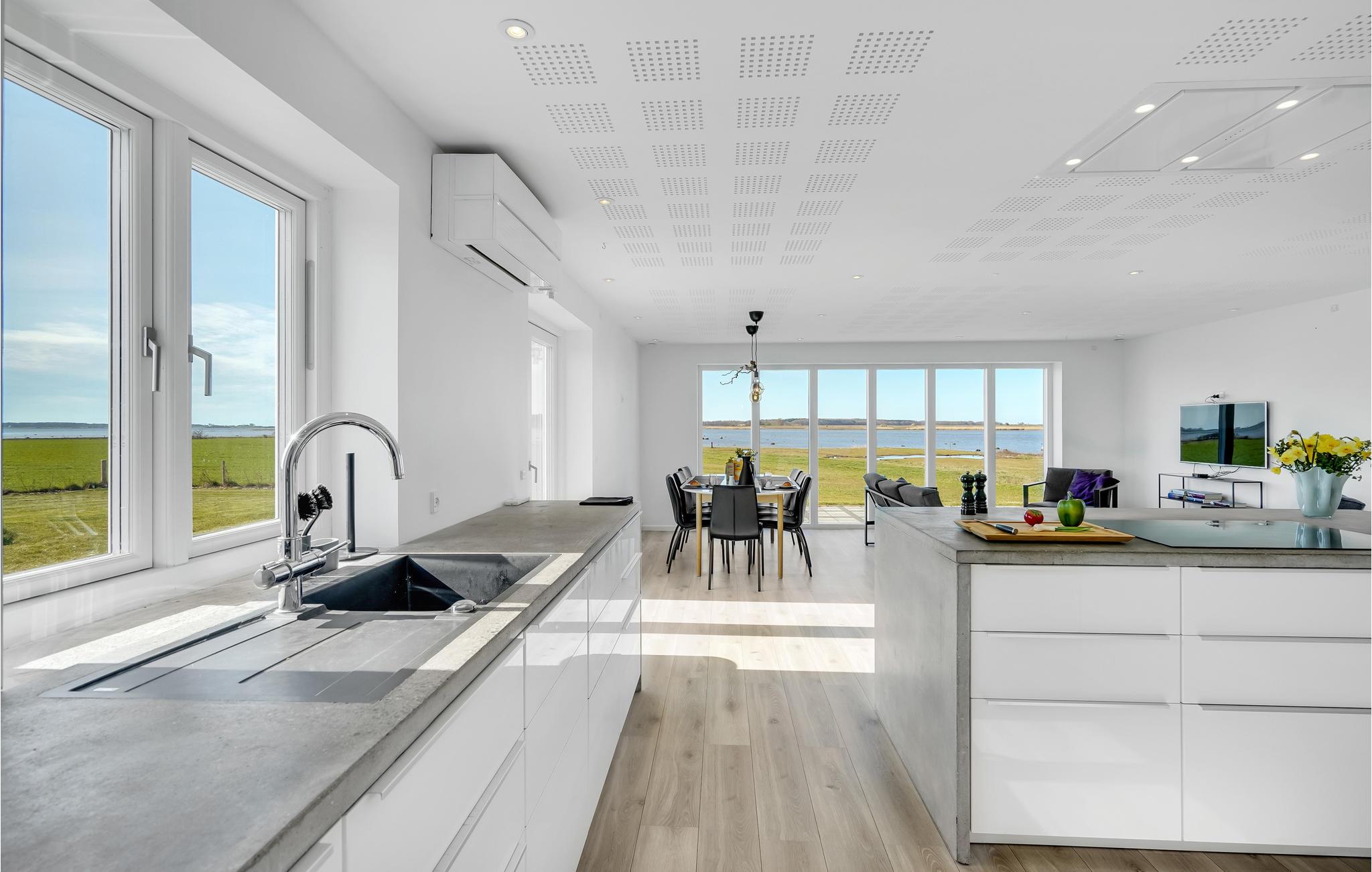 Großes, helles Ferienhaus mit Panoramablick direkt am Avnø Fjord in Dänemark.