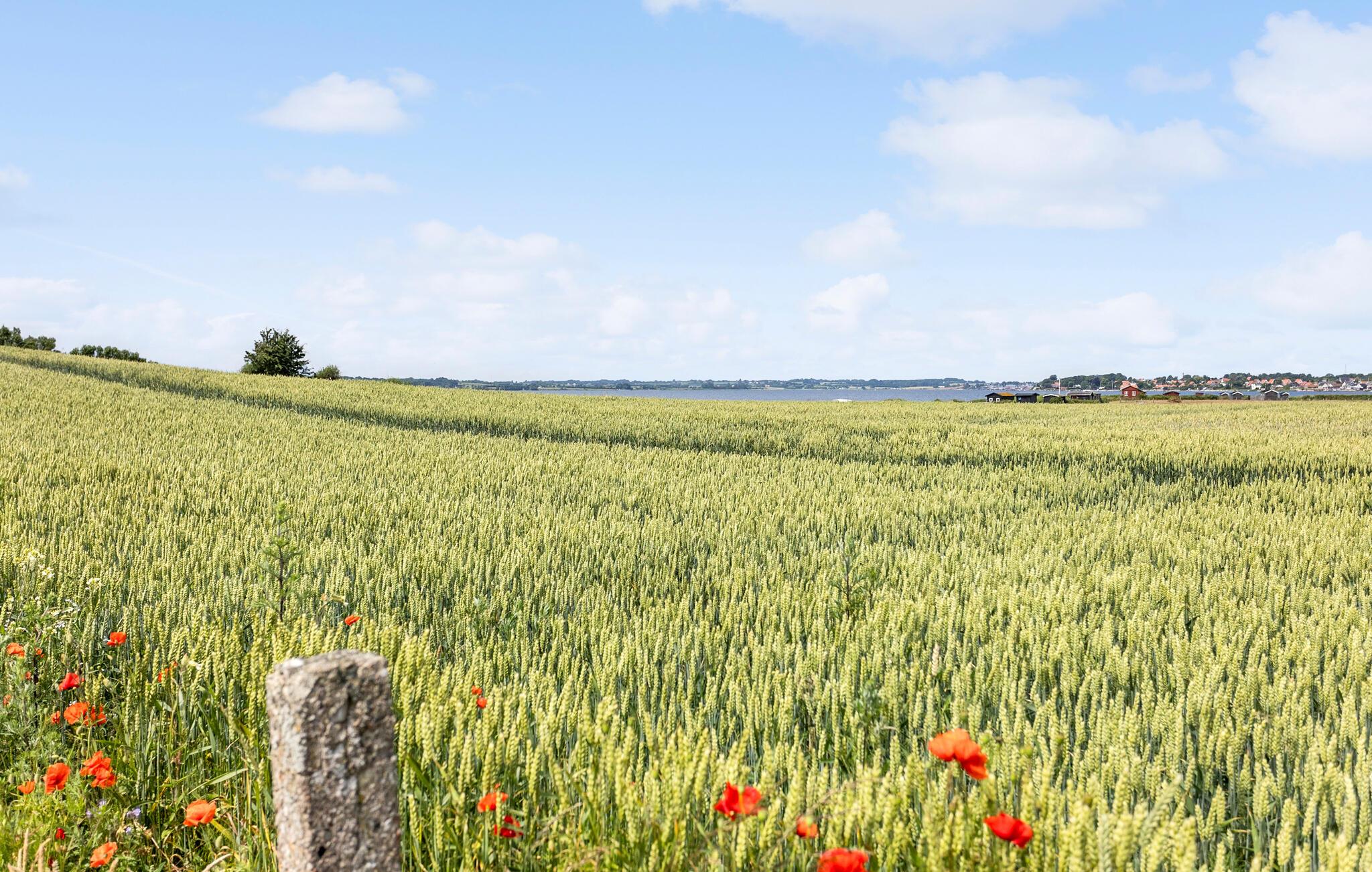 Gemütliches Ferienhaus mit Meerblick in grüner Landschaft bei Faaborg, ideal für entspannte Tage an der dänischen Küste.