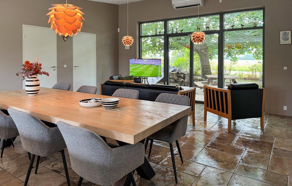 Verbringen Sie einen erholsamen Urlaub in diesem stilvollen Ferienhaus am Bønsvig Strand im Süden der Insel Seeland. Umgeben von der Natur und in Strandnähe, bietet dieses Haus den idealen Ort, um dem Alltag zu entfliehen. Das Ferienhaus besticht durch seine elegante Architektur. Die großen Fenster eröffnen einen wunderbaren Blick auf den gepflegten Garten. Beginnen Sie Ihren Tag mit einem Frühstück am Esstisch oder auf der gemütlichen Terrasse, während Sie die frische Urlaubsluft einatmen. Die moderne, offene Küche ist gut ausgestattet, um gemeinsam mit der Familie köstliche Mahlzeiten zuzubereiten.