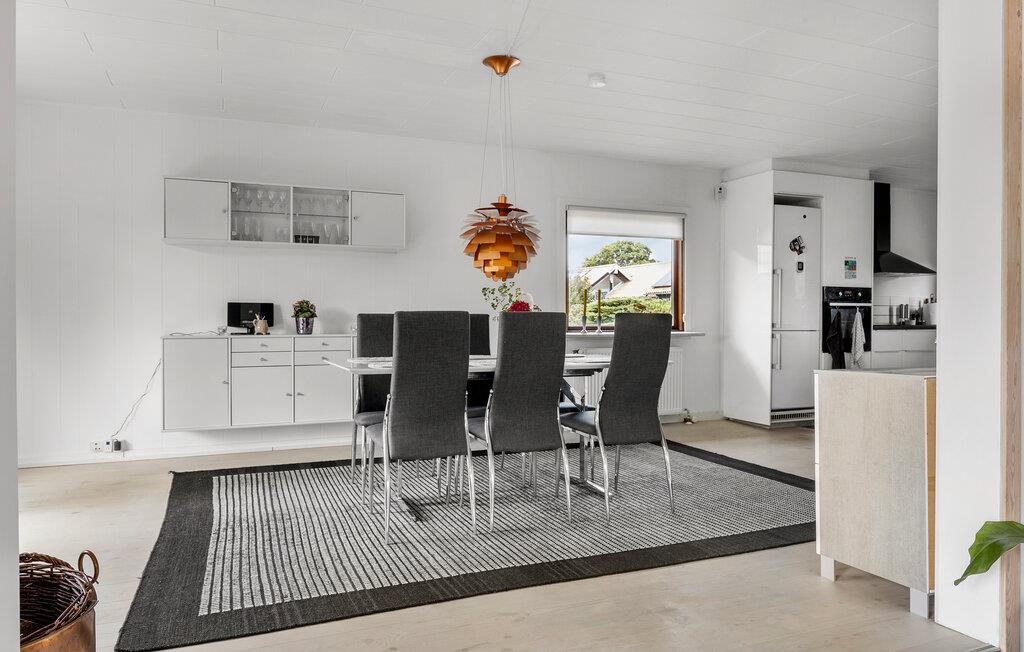 Ihr charmantes Ferienhaus am Båring Strand bietet viel Platz für die ganze Familie und lädt mit seiner hellen, eleganten Einrichtung zum Wohlfühlen ein. Starten Sie den Tag mit einem Frühstück im offenen Wohn- und Essbereich, der durch große Fenster viel Tageslicht hereinlässt. Nehmen Sie Platz am Esstisch und planen Sie die Aktivitäten des Tages oder entspannen Sie sich auf dem komfortablen Sofa. Die moderne Küche bietet alles, was Sie für gemeinsame Kochabende benötigen. Bereiten Sie hier leckere Gerichte zu und genießen Sie diese bei schönem Wetter auf der gemütlichen Terrasse, die sowohl sonnige als auch schattige Plätze bietet. Entspannen Sie sich in der ruhigen, geschlossenen Gartenanlage, während Ihre Kinder auf dem Rasen toben.