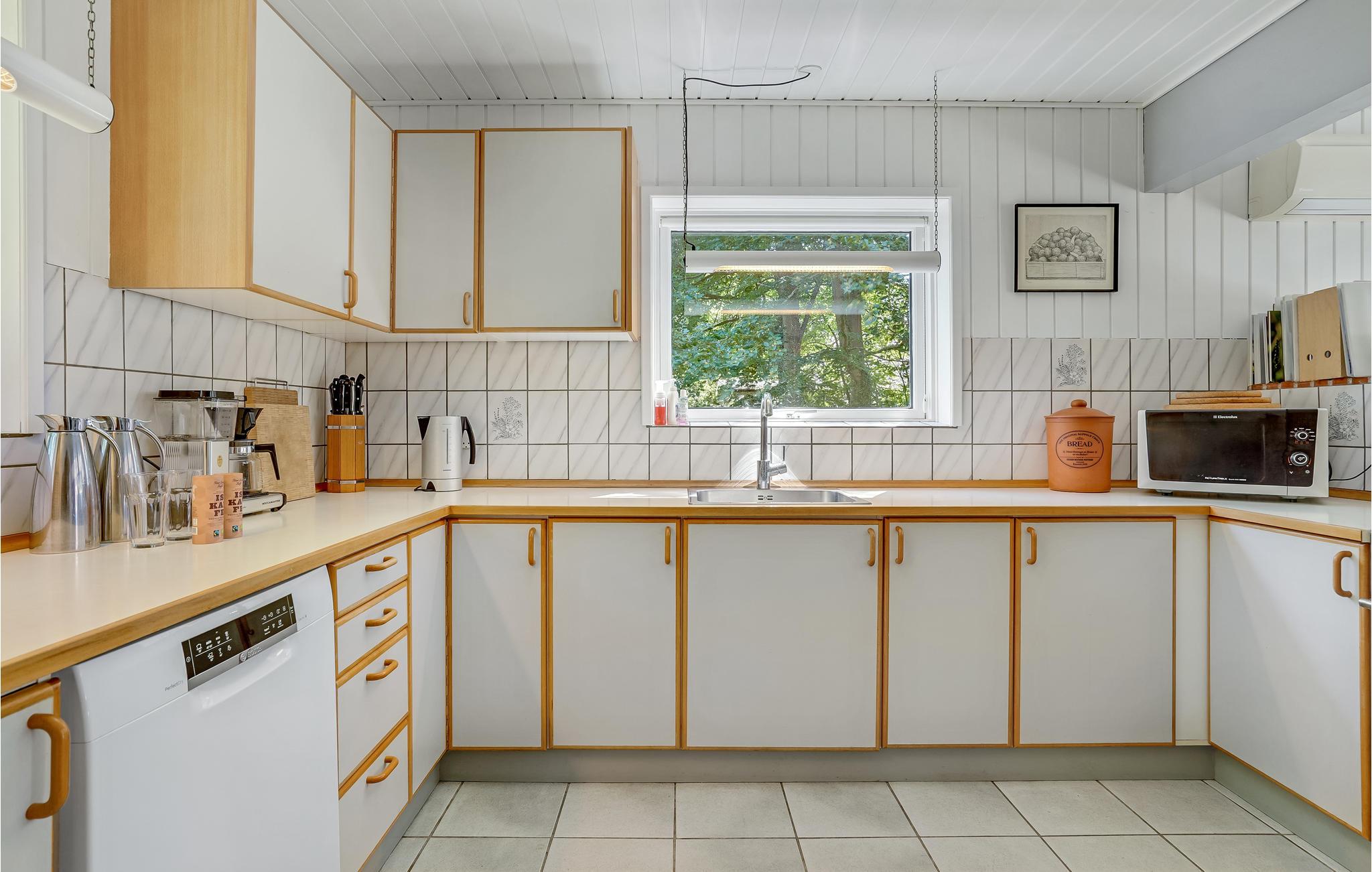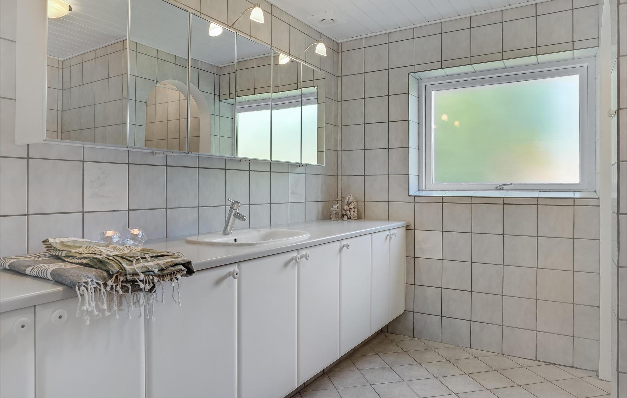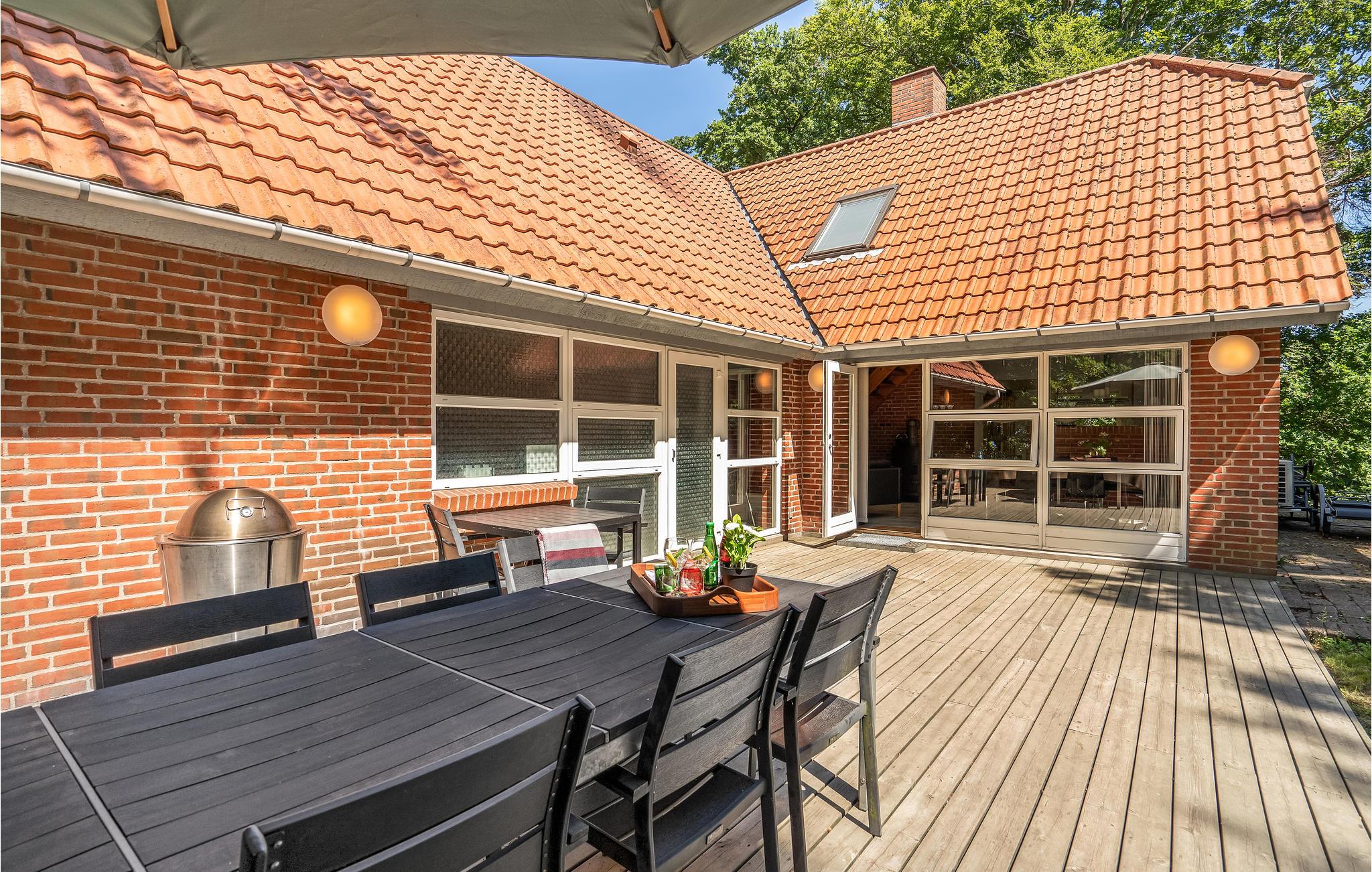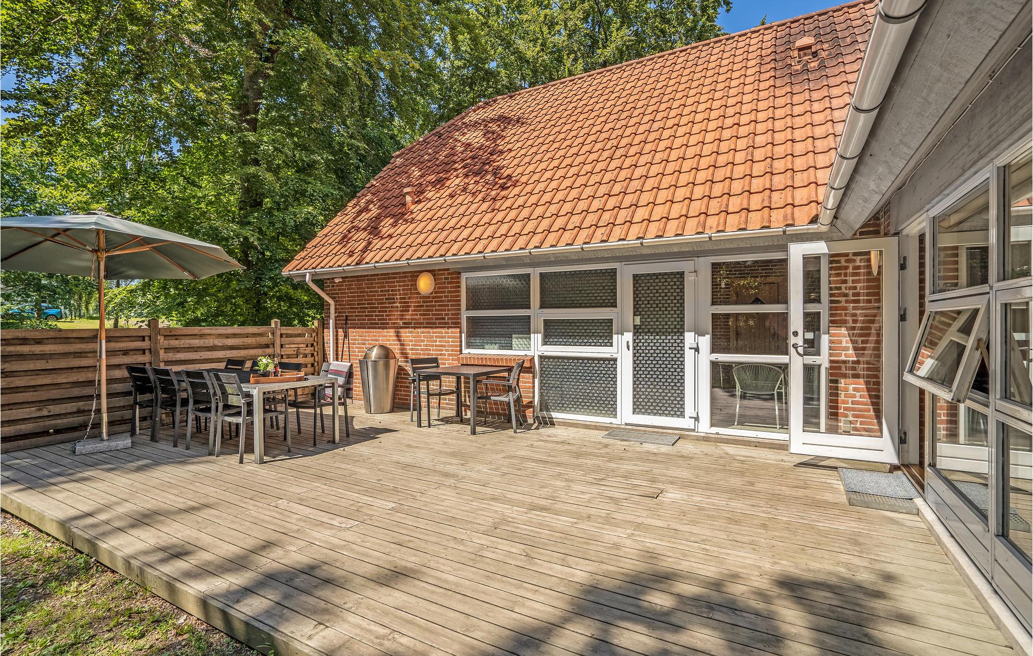 Das schöne Haus mit 2 Etagen beherbergt auch einen Swimmingpool, einen Whirlpool und eine Sauna. Gut eingerichtet erwartet es Sie mit einer Küche mit Essecke und Ausgang zur Terrasse, auf der Sie ungestört sind. Vor dem Kaminofen stehen die behaglichen Sitzmöbel. Die Schlafzimmer sind im Erdgeschoss und 1. Stock zu finden, Bäder gibt es auf beiden Etagen. Im 1. Stock liegt ein weiteres Wohnzimmer; wenn Sie hier sitzen, haben Sie einen guten Blick auf das Wasser. Zum Haus führen Treppen. Das Grundstück wird teils von hohen Bäumen umgeben. Am kinderfreundlichen Båring Strand ist auch ein Steg.