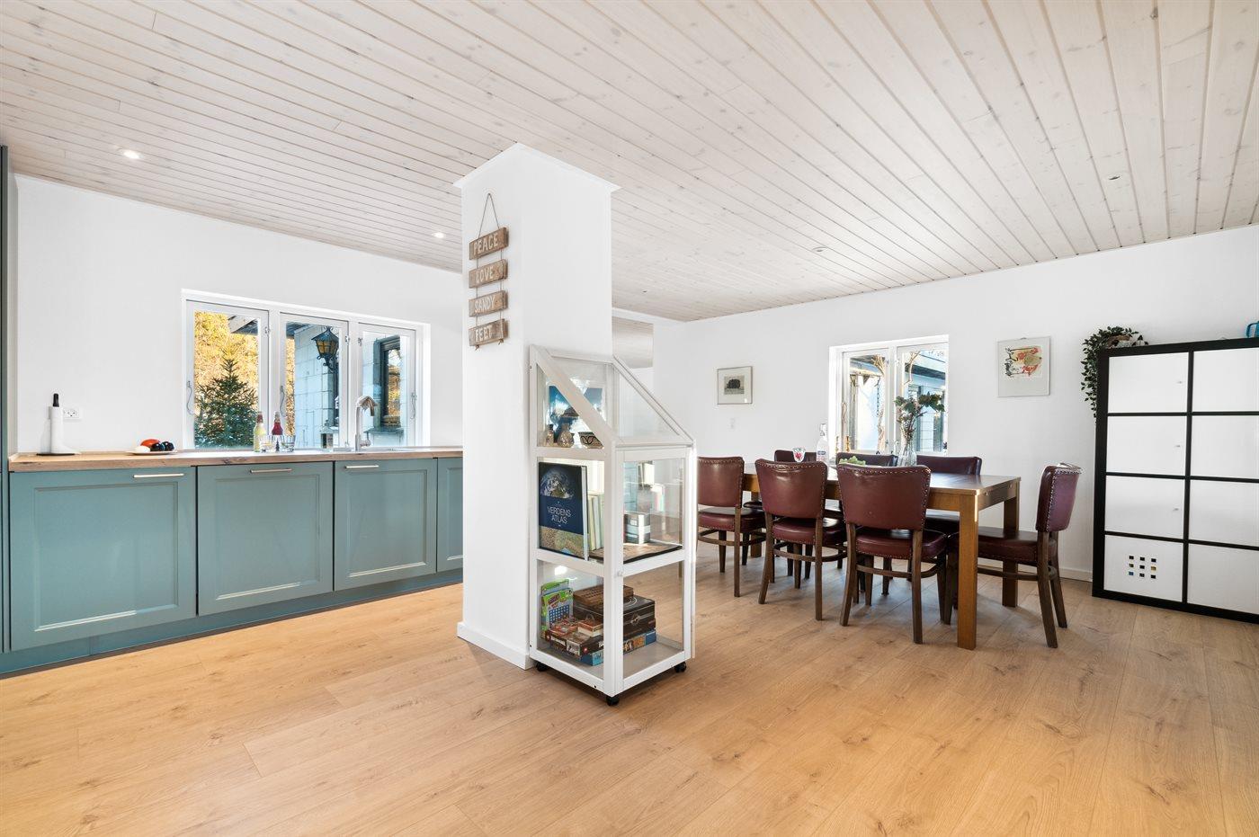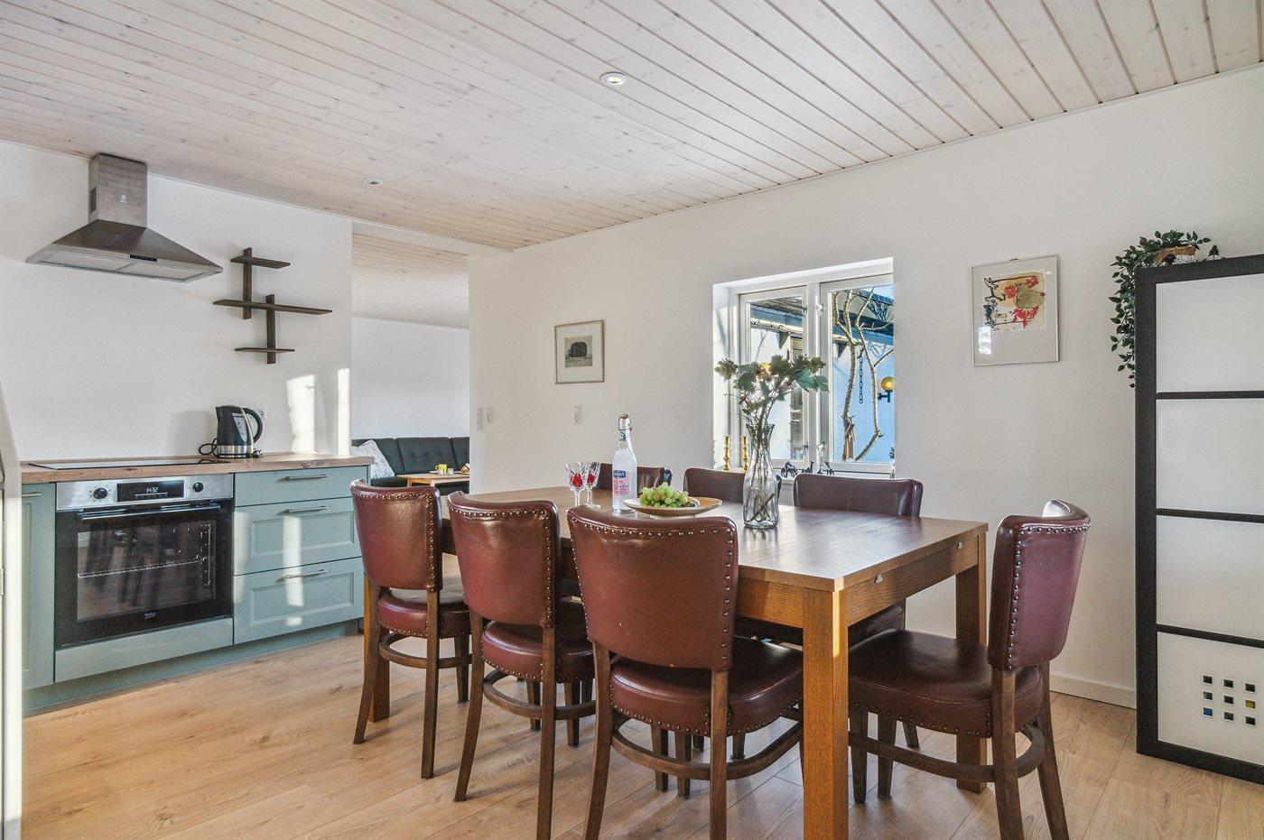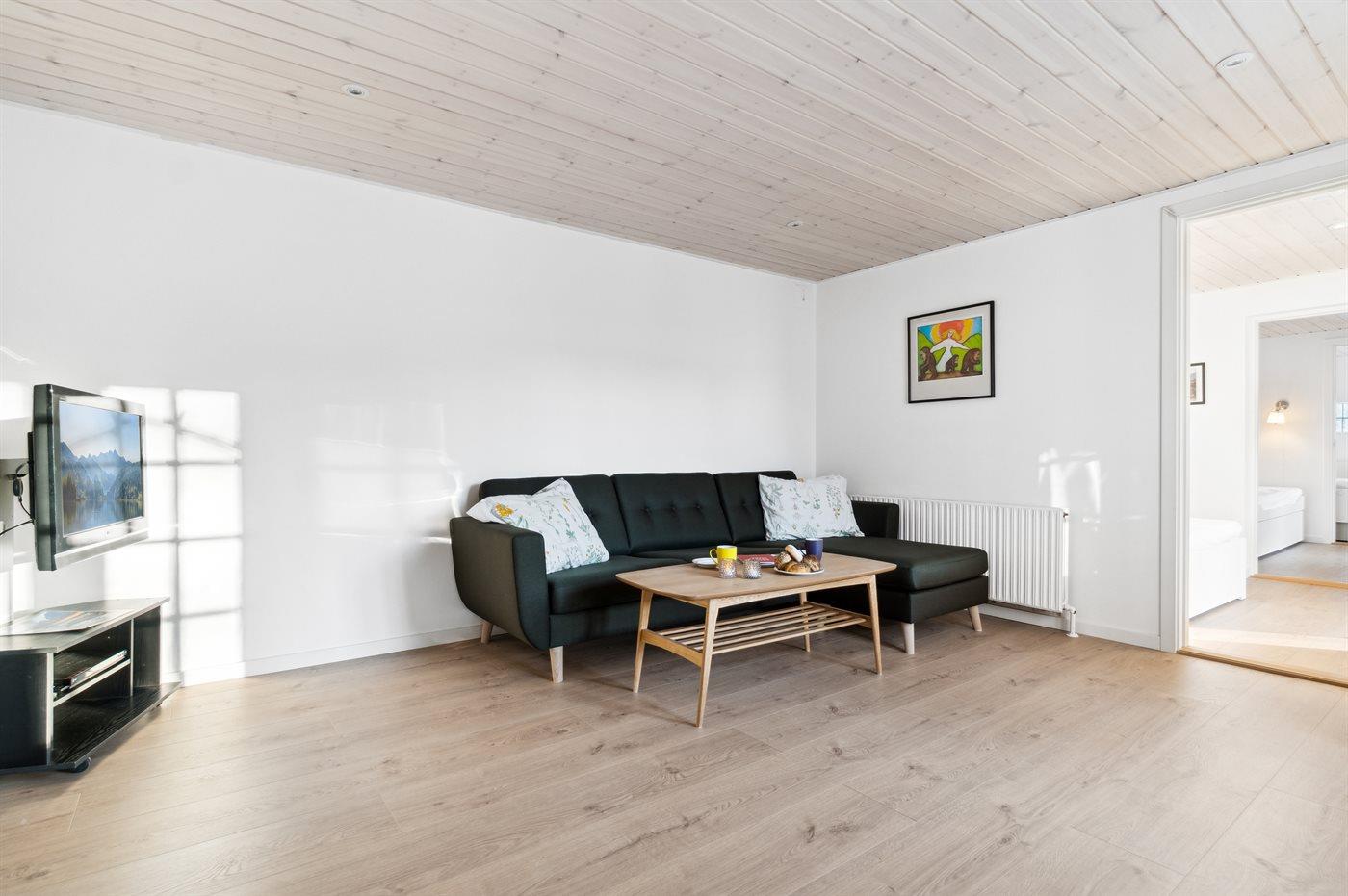Helle Holzböden von guter Qualität, weiße Wände und weiße Decken schaffen ein helles und einladendes Interieur, in dem man schnell das Sommergefühl spürt. Modern und schön eingerichtet, lädt die große Küche/Essbereich zu gemütlichen Momenten ein - sowohl beim Kochen in der gut ausgestatteten Küche als auch beim Essen. Im Wohnzimmer kann man sich auf dem Sofa entspannen, wenn man fernsehen möchte und mit der Familie Zeit verbringt - sei es beim Kartenspielen, Brettspielen oder anderen Aktivitäten, die die Familie im Urlaub zusammenbringen. Das Badezimmer und die Gästetoilette sind notwendige Einrichtungen, aber auch hier wurde auf die Details geachtet. Die drei Schlafzimmer sind durch Verbindungstüren verbunden, die verschlossen werden können, sodass der Zugang zu jedem Schlafzimmer über die Terrassentüren erfolgen kann, die in jedem Schlafzimmer vorhanden sind.