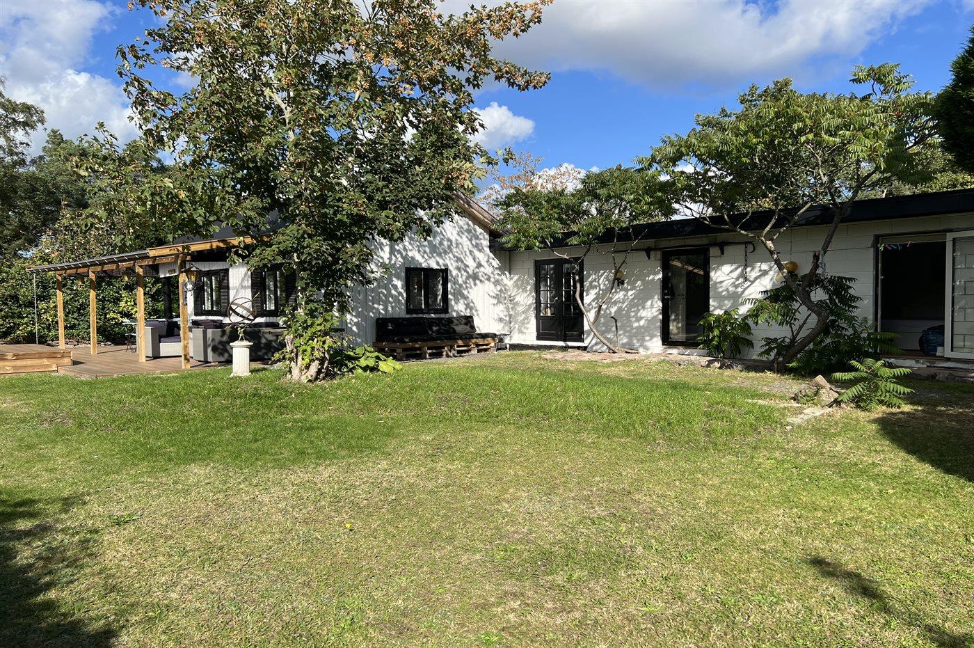 Das Grundstück ist durch eine Hecke entlang der Skansevej abgeschirmt, damit man die Sonne und den Sommer auf den Terrassen ungestört genießen kann, von denen ein großer Teil überdacht ist. Hinter dem Haus befindet sich ein größerer Bereich, wo man fast alles für sich alleine hat.