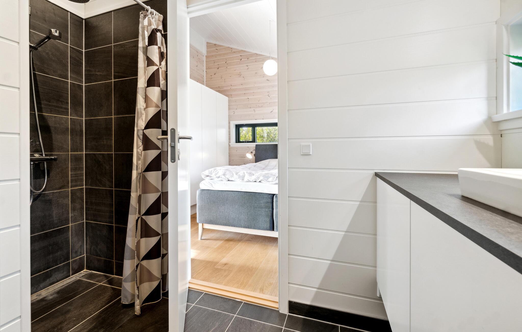 Ihr elegantes und stilvolles Ferienhaus bietet Ihnen alles, was einen Urlaub unvergesslich macht. Beginnen Sie Ihren Tag mit einer warmen Tasse Kaffee und bereiten Sie in der modernen, offenen Küche ein köstliches Frühstück für Ihre Lieben vor. Am einladenden Esstisch findet die ganze Familie Platz und kann die wunderschöne Panaromaaussicht auf das Meer, das quasi direkt hinter den großen Fenstern liegt, genießen. Auch die Sofaecke verspricht eine gemütliche Zeit. Tauchen Sie in die Seiten eines guten Buches ein oder spielen Sie gemeinsam mit Ihren Kindern lustige Gesellschaftsspiele. Auf der Terrasse sollten Sie einmal ganz tief durchatmen und dabei den Blick schweifen lassen. Der Terrassentisch lädt zum Verweilen und zu leckeren Grillabenden ein.