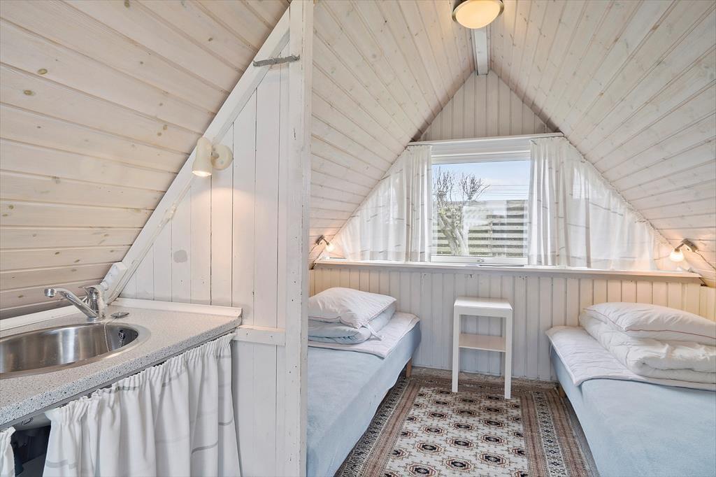 Im Garten begrüßt Sie ein 10 m² großes Nebengebäude, das während der Sommersaison genutzt werden kann. Es beinhaltet einen Holzfußboden, eine kleine Arbeitsplatte mit einem Waschbecken und zwei Einzelbetten. Das Nebengebäude ist gemütlich und verwöhnt mit schönem Blick auf Strand und Meer.