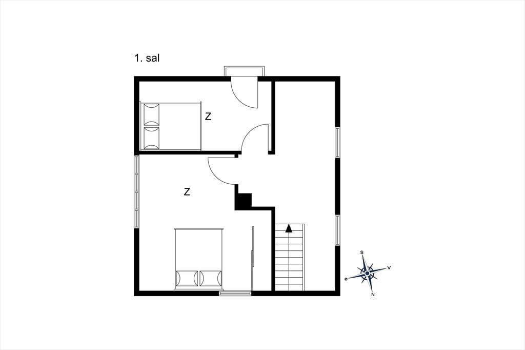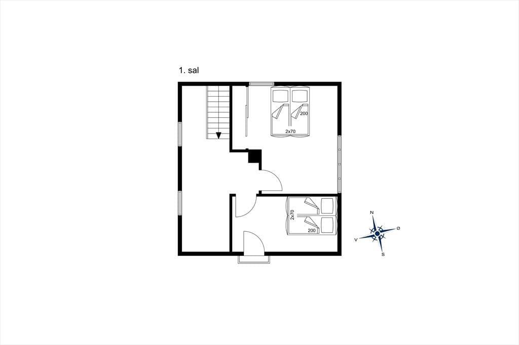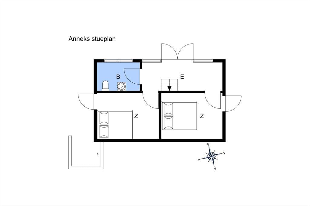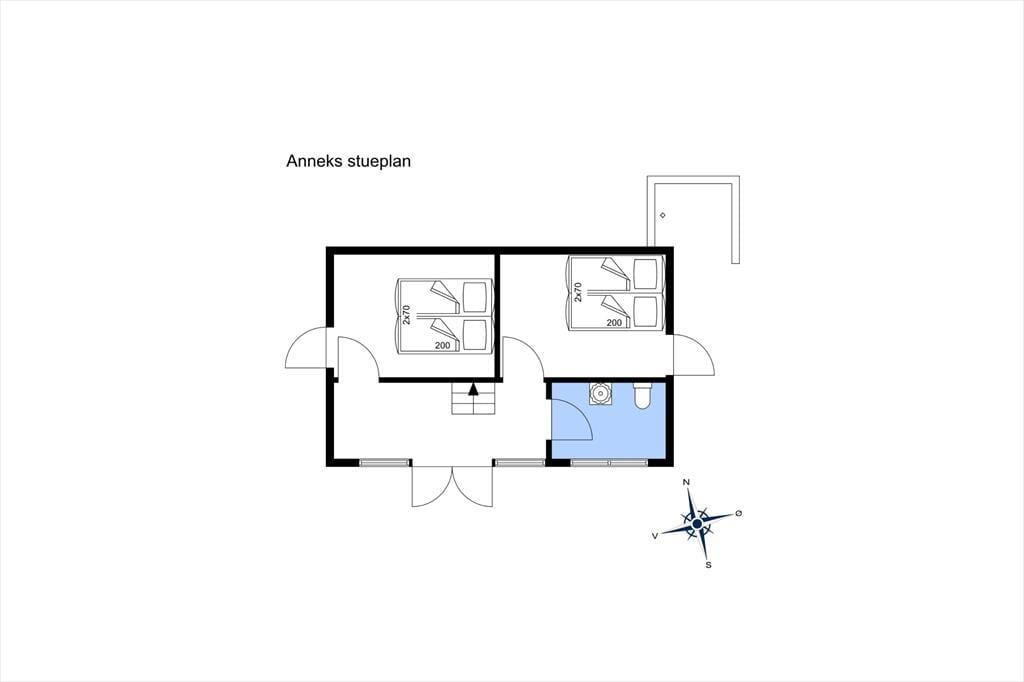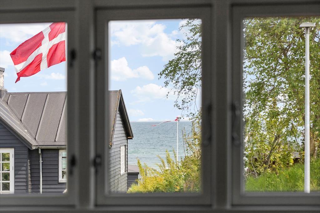 Das Sommerhaus samt Nebengebäude bieten zusammen eine Menge Platz für sowohl gemütliches Beisammensein als auch für ein wenig Zeit jeweils allein. Das helle Wohnzimmer mit Holzfußboden, Kamin und Tür zur Terrasse bildet mit der gut ausgestatteten Küche eine Einheit. Vom Eingang eine Stufe hinunter gelangt man zum Badezimmer mit Dusche und Handtuchtrockner. Im ersten Stock befindet sich ein geräumiger Absatz; hier sind zwei schöne Schlafräume mit doppelten Boxspringbetten untergebracht. Hier hat man Meerblick im einen Zimmer, während das andere über einen französischen Balkon verfügt. Auf der gesamten Etage ist Holzfußboden verlegt. Das hübsche Nebengebäude aus dem Jahr 2007 beherbergt außerdem zwei Schlafzimmer mit jeweils zwei Boxspringbetten, ferner einen Schlafboden und ein herrliches Badezimmer mit Fußbodenheizung. An der Ostseite des Nebengebäudes befindet sich eine Außendusche.