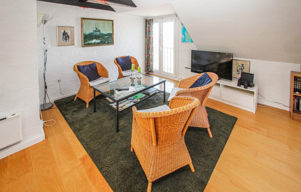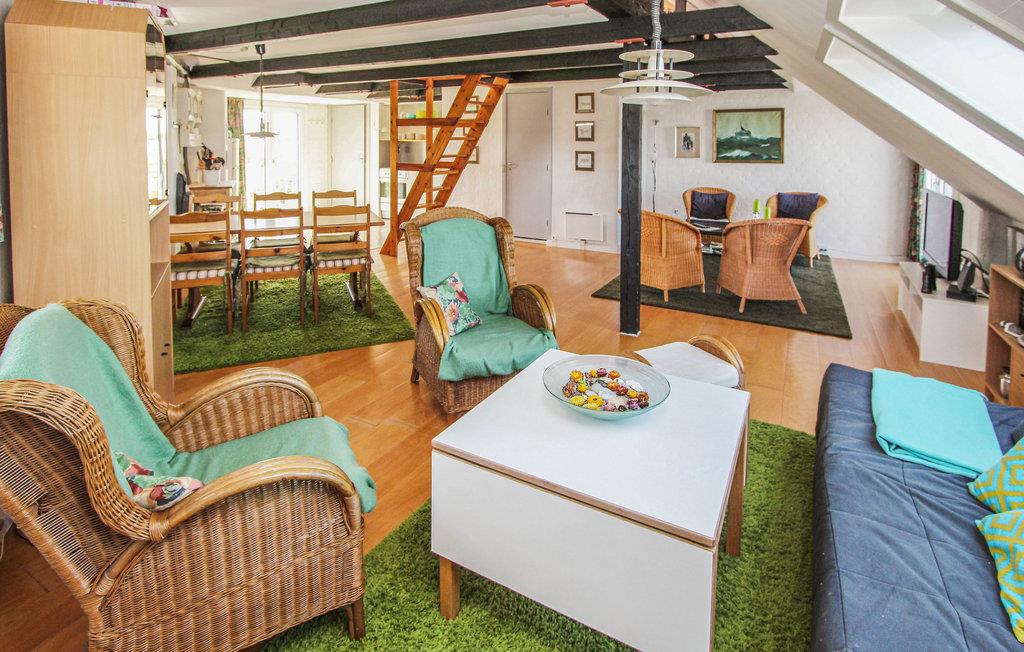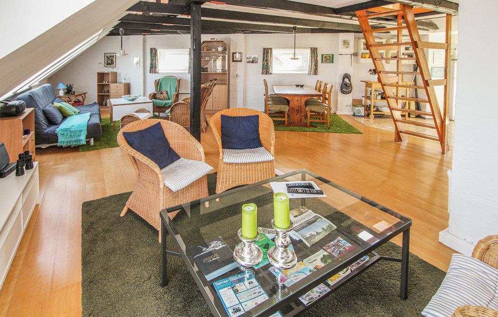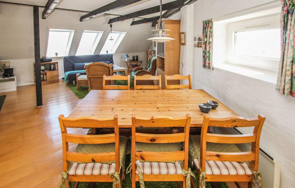 Die gemütliche Wohnung voller interessanter Details und mit sichtbaren Deckenbalken eignet sich gut für ein Paar, das einen entspannten Urlaub in zentraler Lage am Hafen von Ballen verbringen möchte. Hier wissen Sie stets, was im Hafen vor sich geht, denn Sie haben einen wunderbaren Meerblick, der zu jeder Tageszeit, sei es morgens beim Frühstück oder bei Kaffee und Kuchen am Nachmittag nach einem Spaziergang oder einer Fahradtour, eine wahre Freude ist.