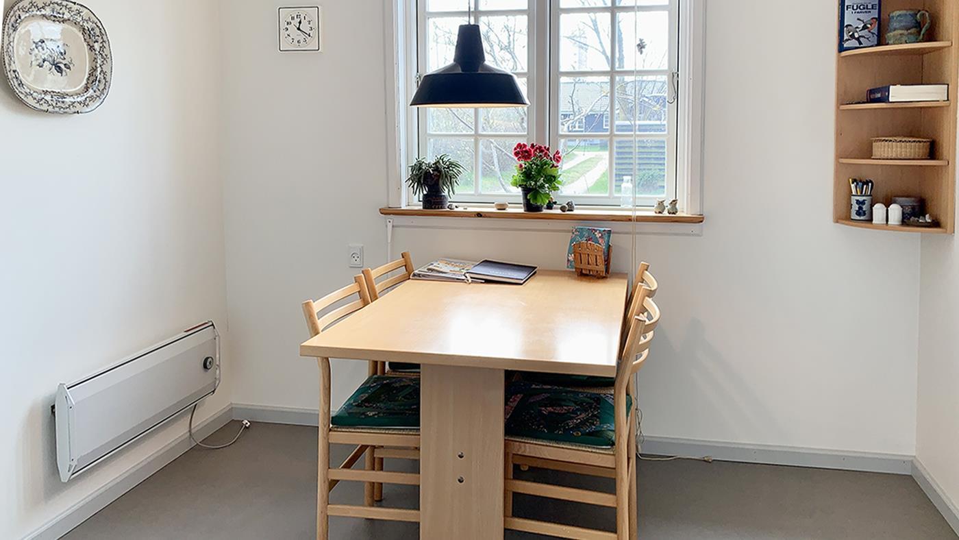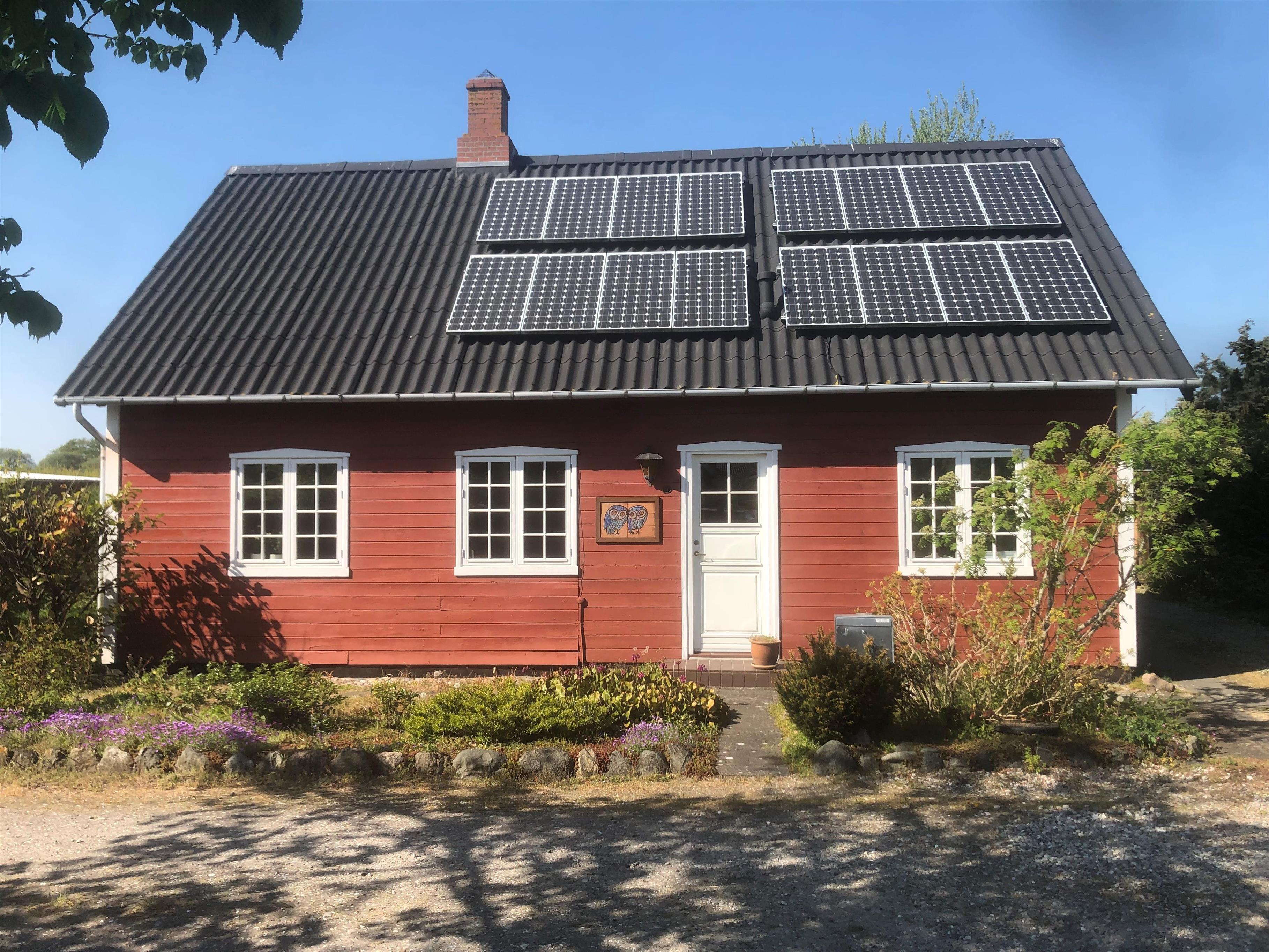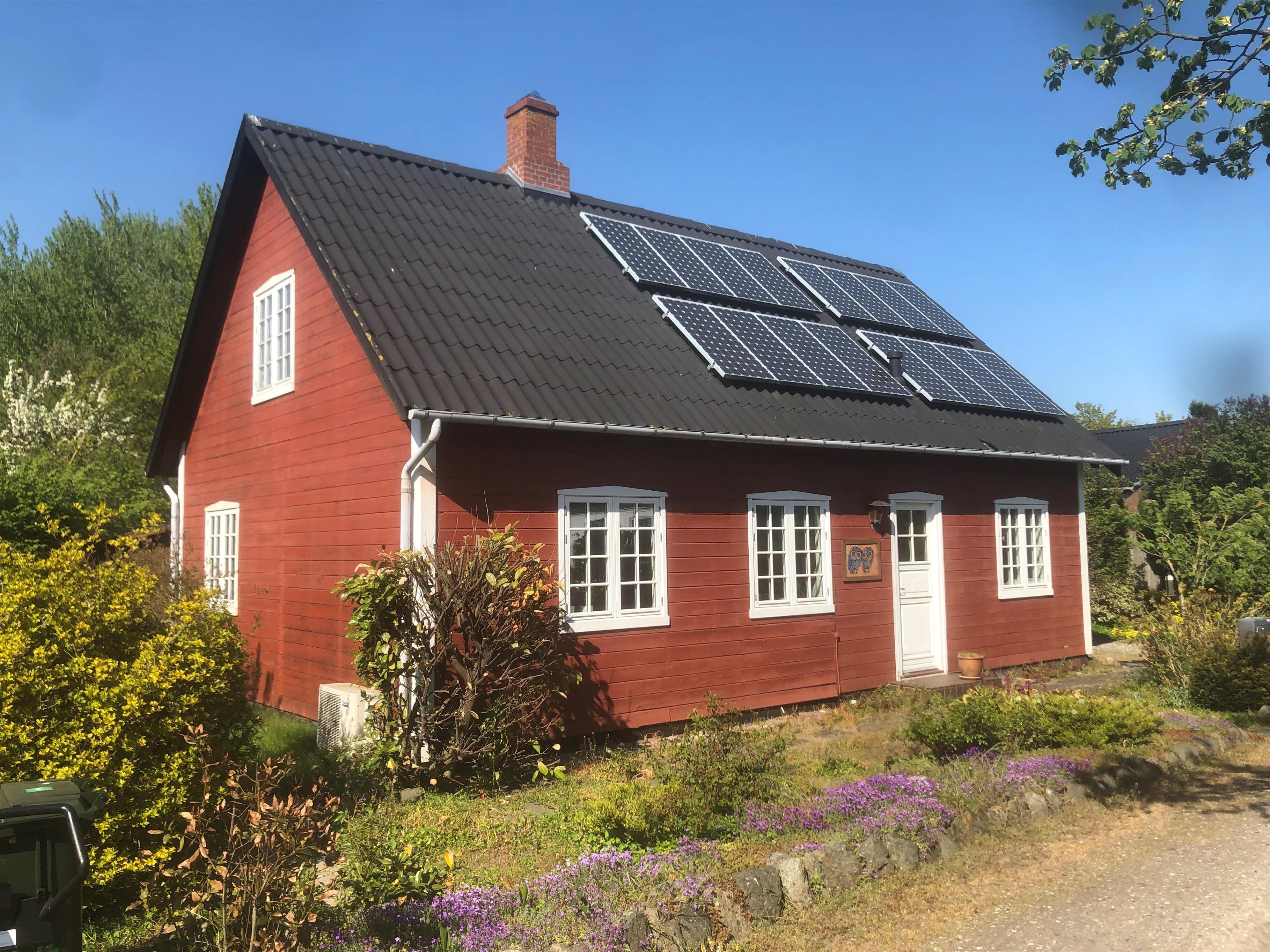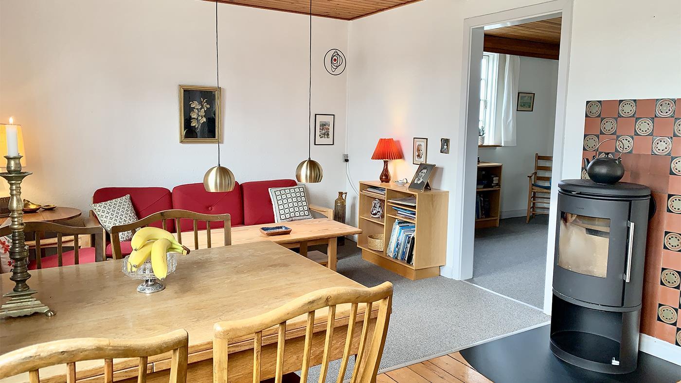 Gemütliches Ferienhaus auf zwei Etagen, nicht weit vom Strand entfernt. Das Erdgeschoss verfügt über eine schöne neue Küche mit Essbereich und ein gemütliches Wohnzimmer mit Essbereich, gemütlichen Ecken mit Sofas und einem Holzofen. Ein Großteil der Keramik, die im Haus zu sehen ist, wurde von einem Keramiker hergestellt, der auf Samsø lebte, darunter die Eule an der Außenwand und die Kacheln hinter dem Holzofen. Außerdem gibt es ein Schlafzimmer mit Einzelbett sowie ein Badezimmer mit Dusche und eine Waschküche mit Waschmaschine. Im ersten Stock befinden sich drei Schlafzimmer, zwei mit Doppelbett und eines mit zwei Einzelbetten. Das Haus ist ideal für Paare oder Familien mit Kindern.