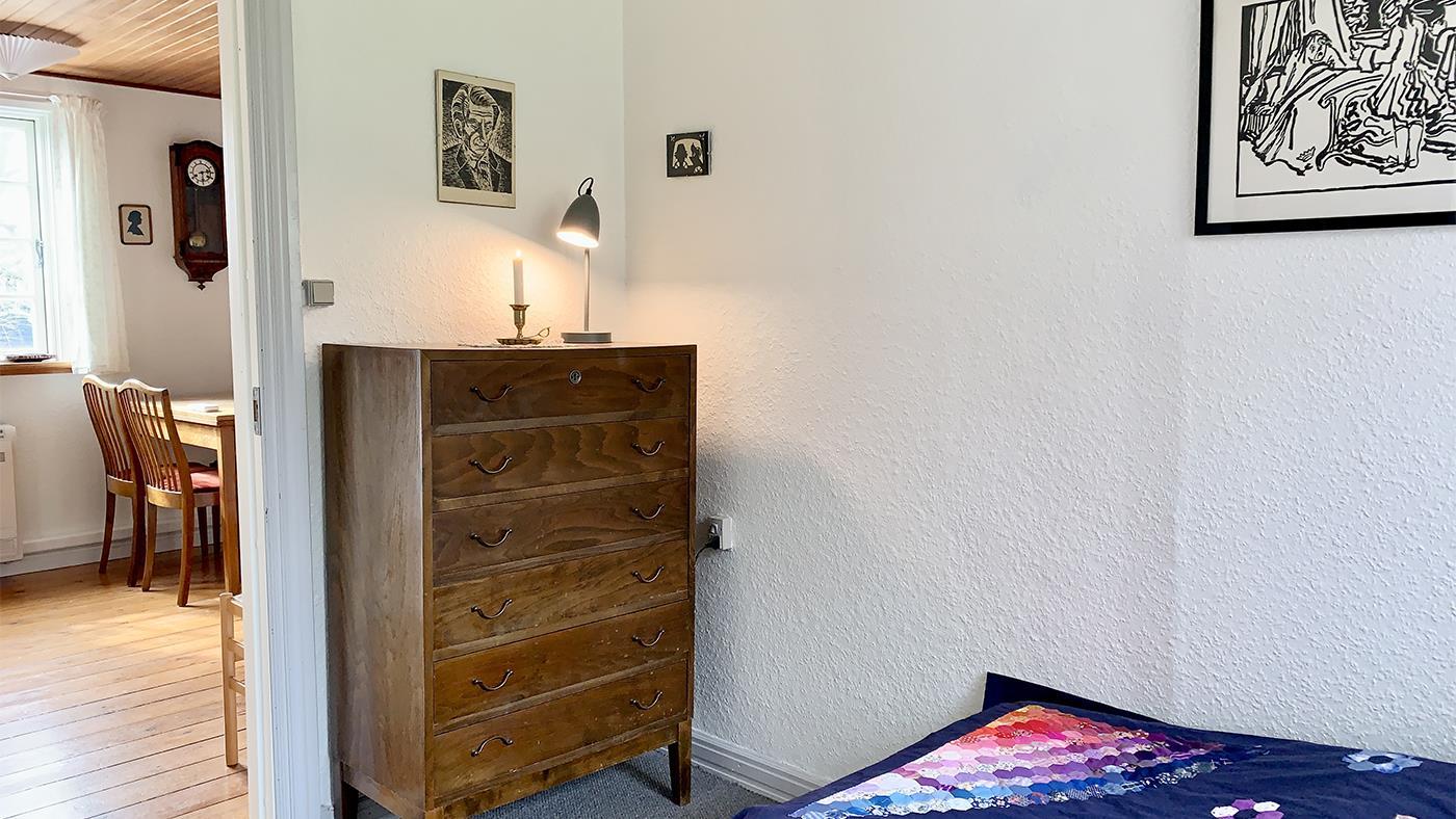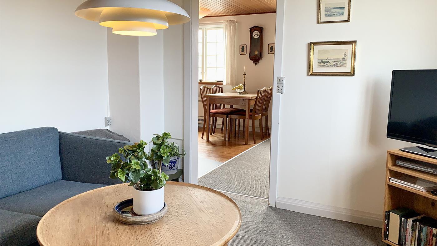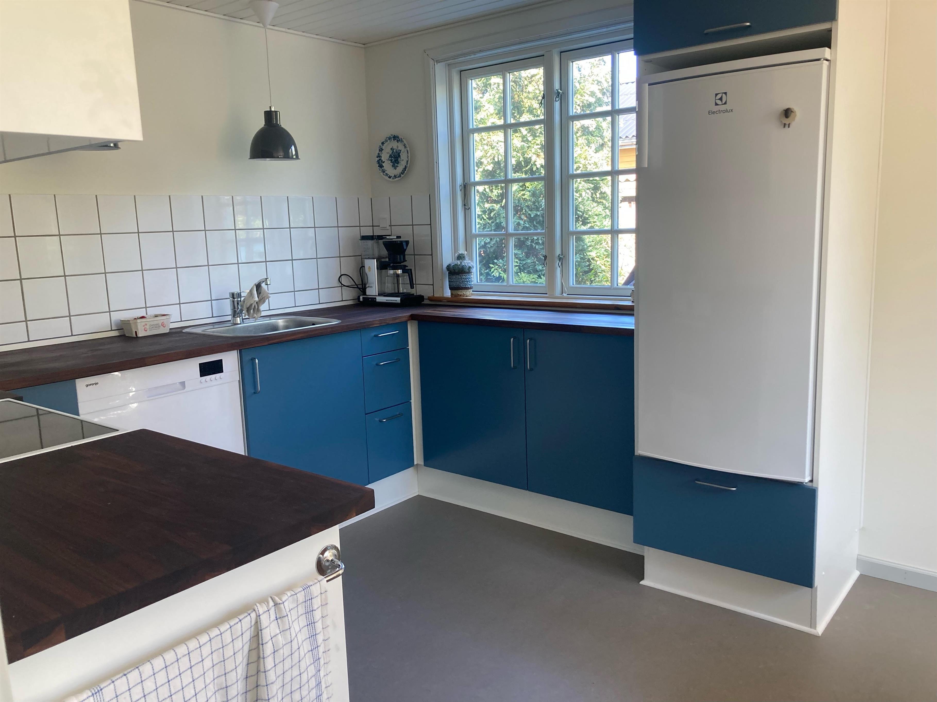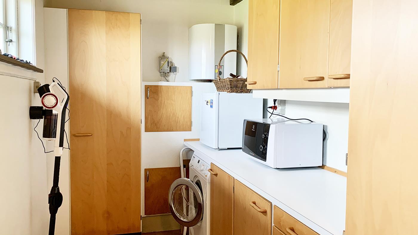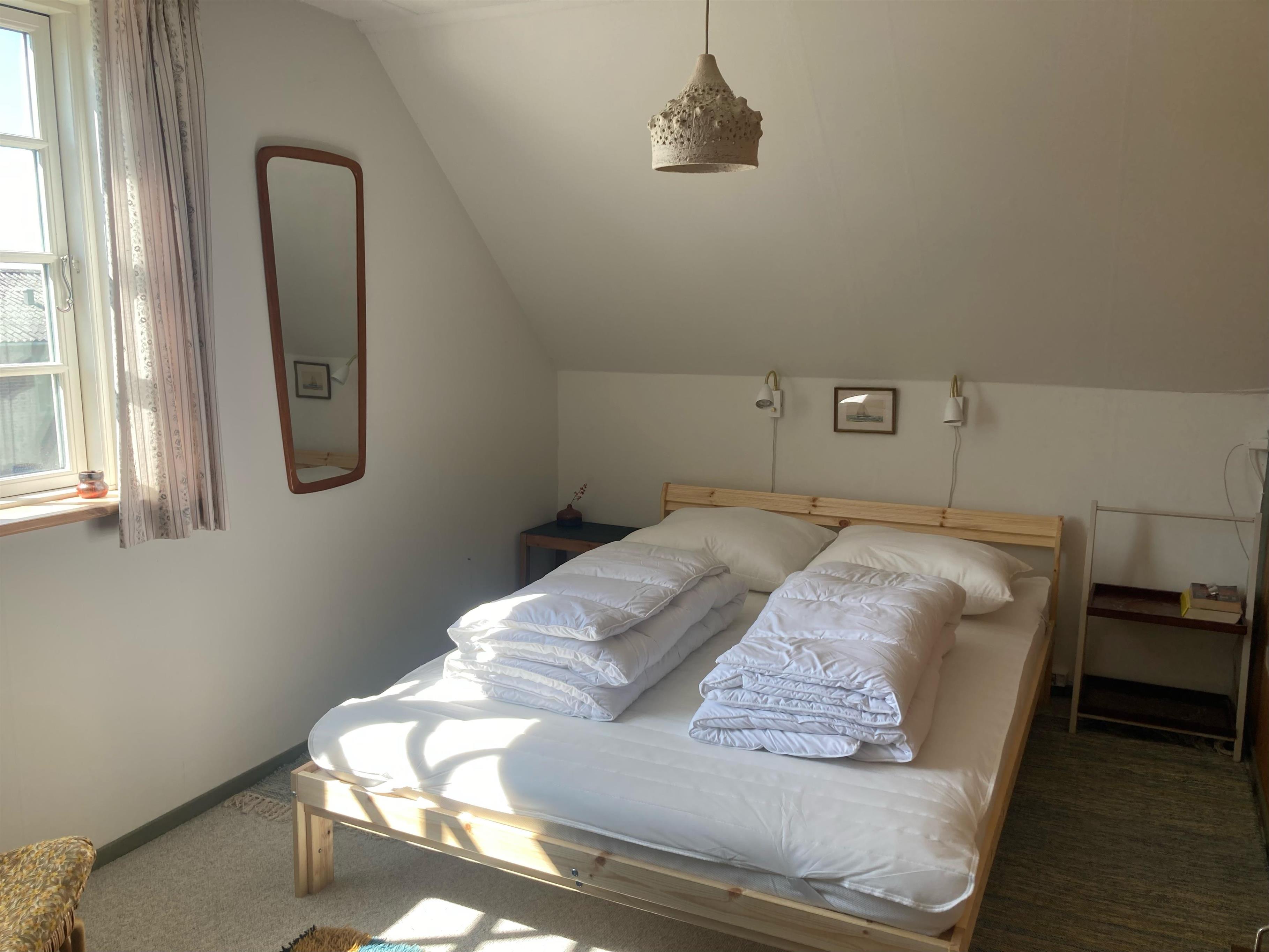 Gemütliches Ferienhaus auf zwei Etagen, nicht weit vom Strand entfernt. Das Erdgeschoss verfügt über eine schöne neue Küche mit Essbereich und ein gemütliches Wohnzimmer mit Essbereich, gemütlichen Ecken mit Sofas und einem Holzofen. Ein Großteil der Keramik, die im Haus zu sehen ist, wurde von einem Keramiker hergestellt, der auf Samsø lebte, darunter die Eule an der Außenwand und die Kacheln hinter dem Holzofen. Außerdem gibt es ein Schlafzimmer mit Einzelbett sowie ein Badezimmer mit Dusche und eine Waschküche mit Waschmaschine. Im ersten Stock befinden sich drei Schlafzimmer, zwei mit Doppelbett und eines mit zwei Einzelbetten. Das Haus ist ideal für Paare oder Familien mit Kindern.