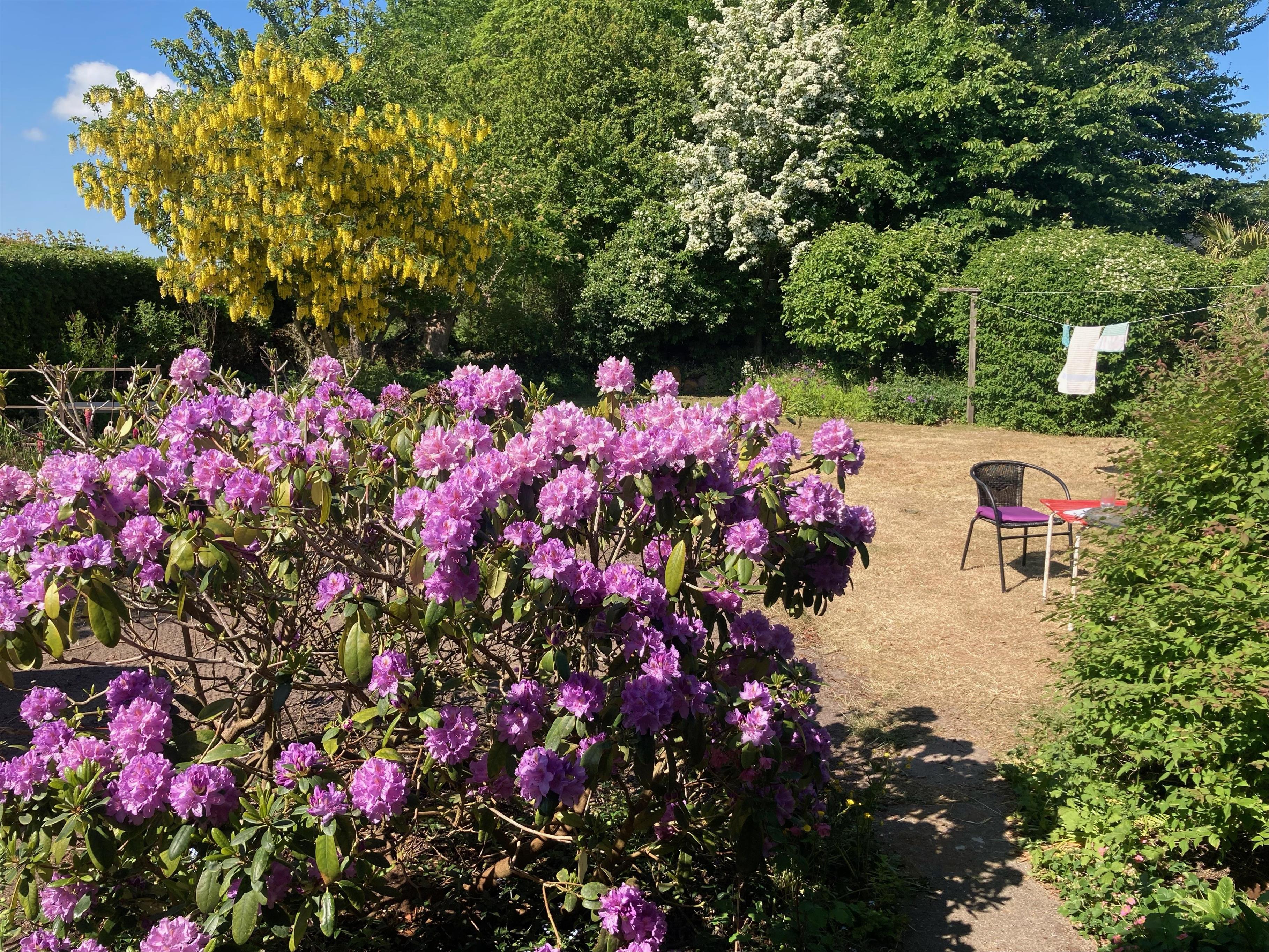 Hinter dem Haus befindet sich ein schöner Garten mit einer gefliesten Terrasse mit Gartenmöbeln, auf der Sie morgens und abends die Sonne genießen können.