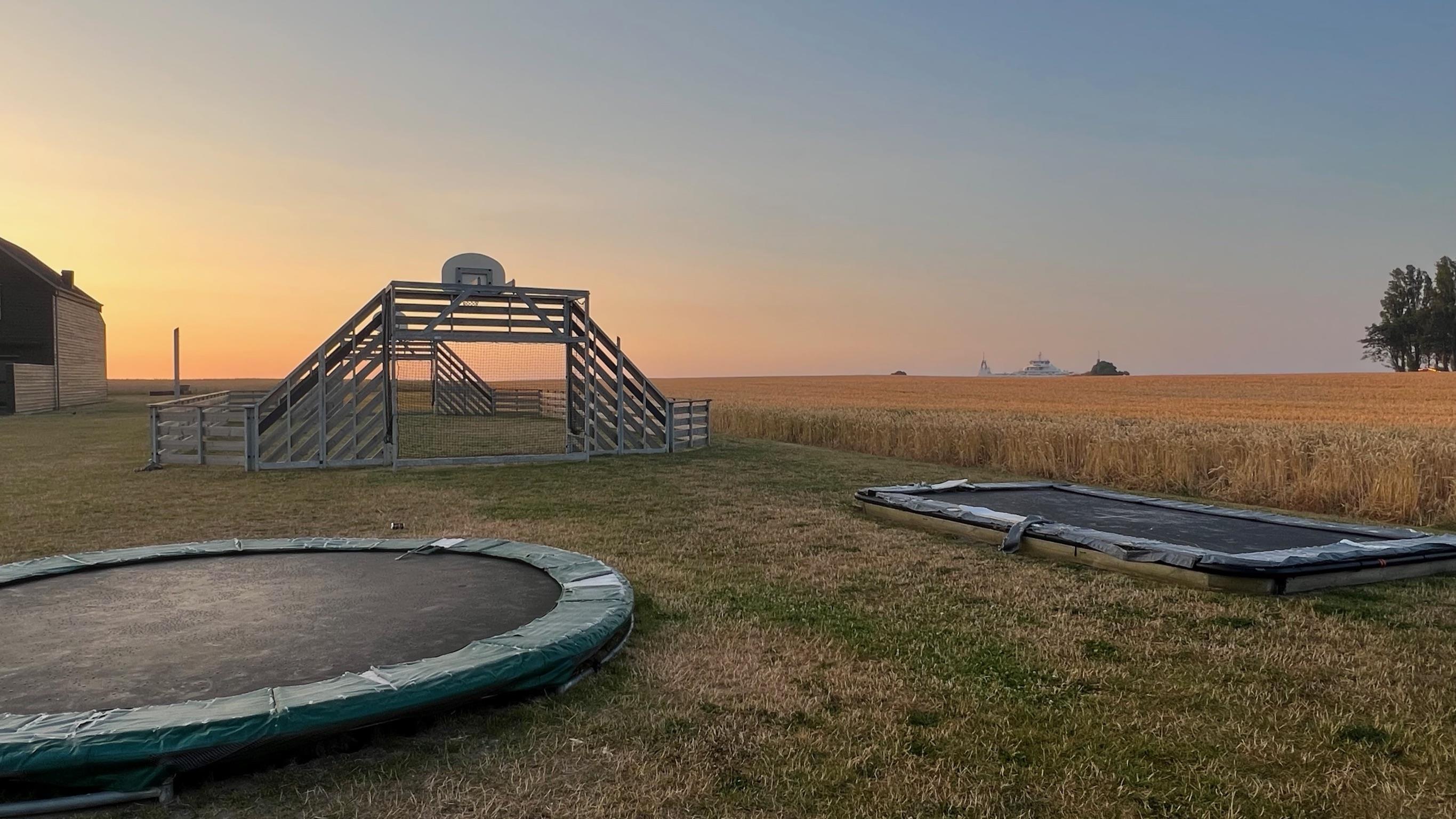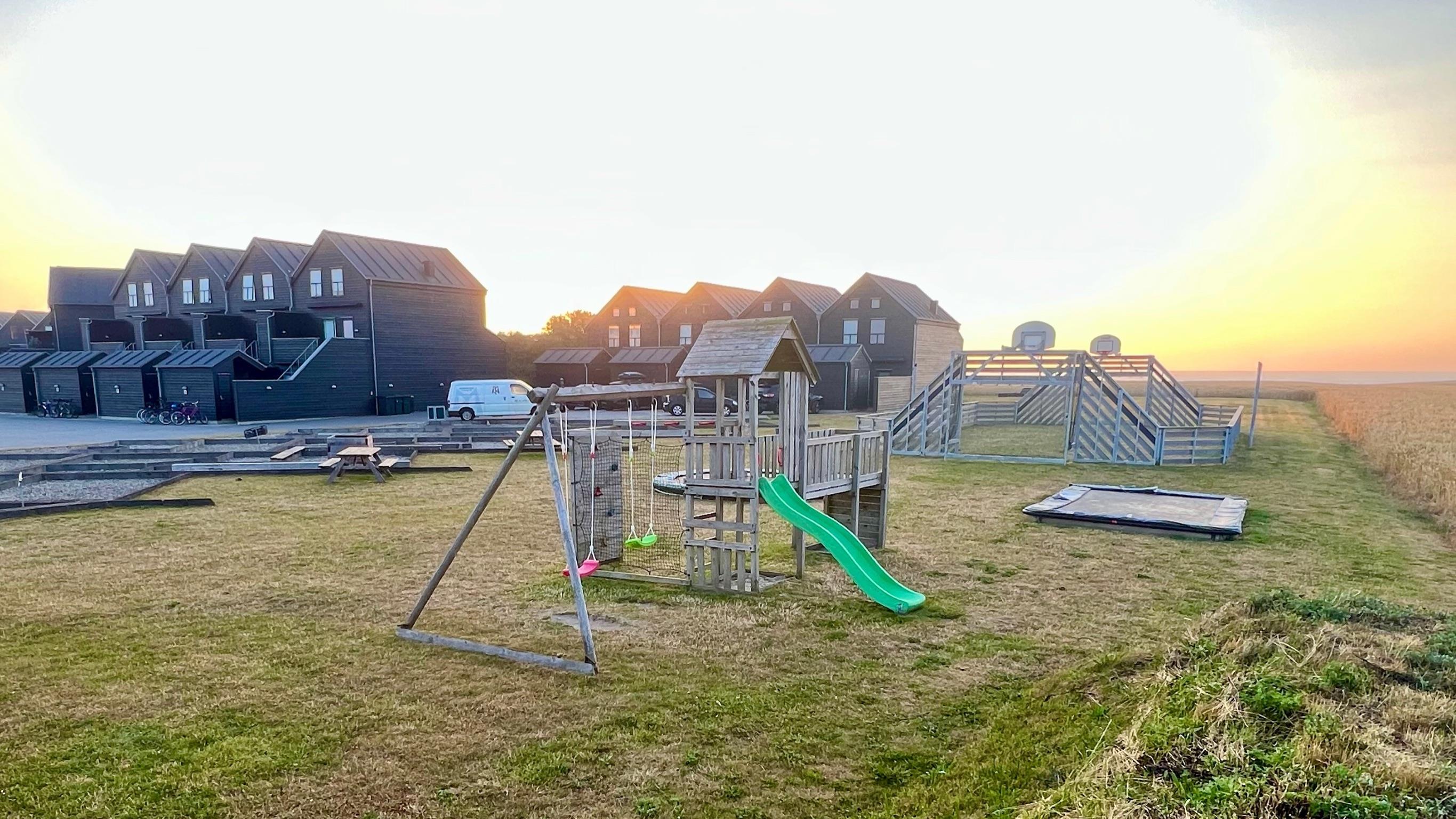 Auf der Terrasse können Sie den ganzen Tag die Sonne genießen – und die Markise sorgt für Schatten, wenn es zu heiß wird. Hier gibt es viel Platz zum Entspannen und für geselliges Beisammensein, während sich die Kinder auf dem gemeinsamen Spielplatz mit Trampolin, Ballspielplatz und Schaukeln vergnügen.