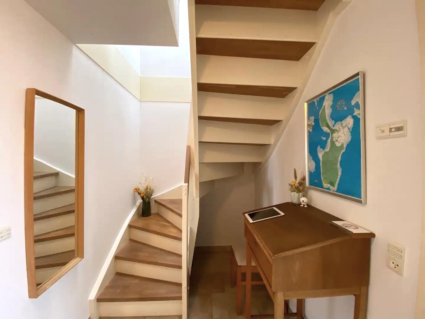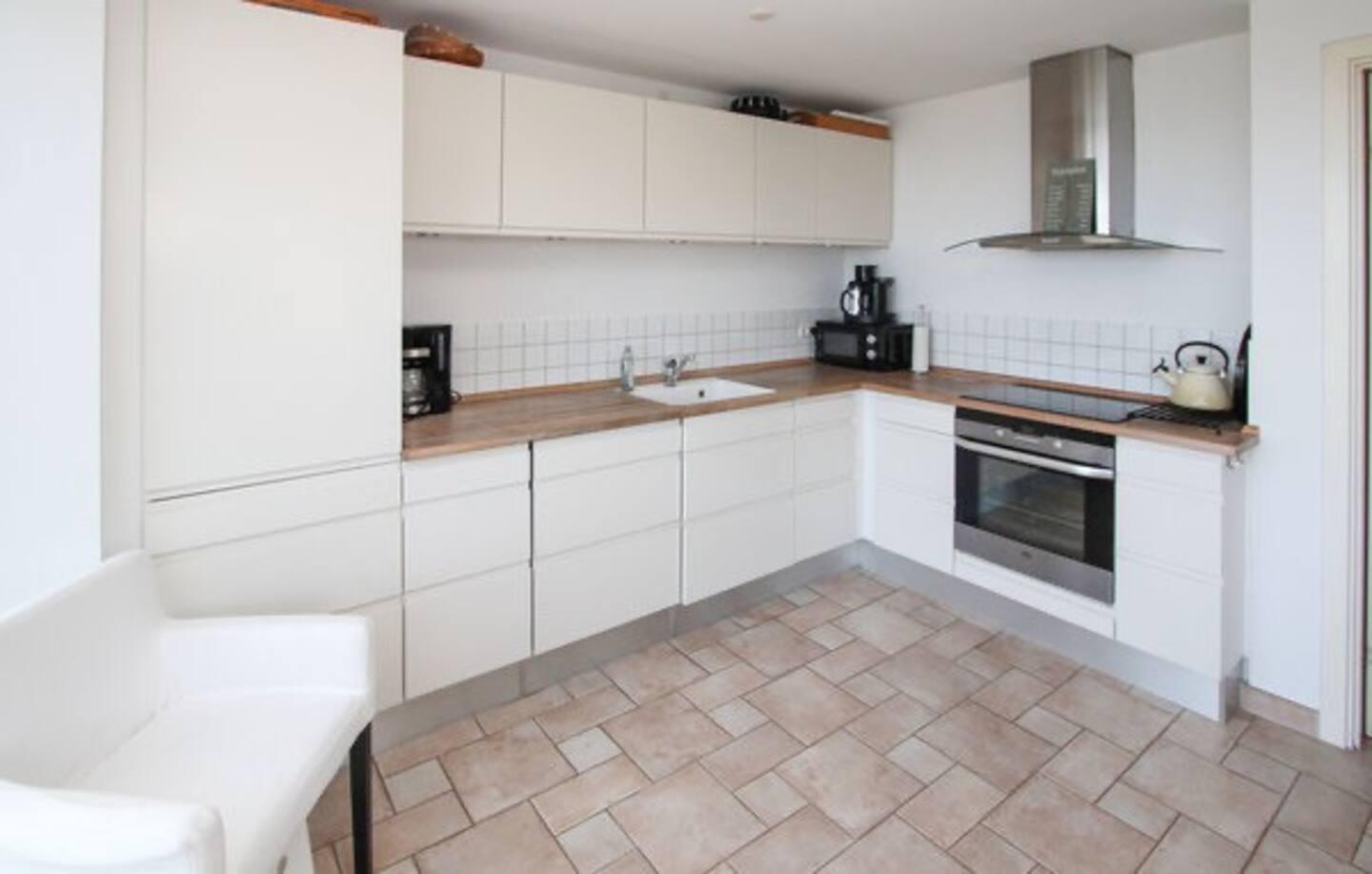 Die Ferienwohnung ist geschmackvoll eingerichtet mit hellen Räumen und modernen Details. Im Erdgeschoss finden Sie eine gut ausgestattete Küche mit Essbereich und direktem Blick auf das Wasser, ein Badezimmer mit Duschkabine sowie ein Schlafzimmer mit Doppelbett.