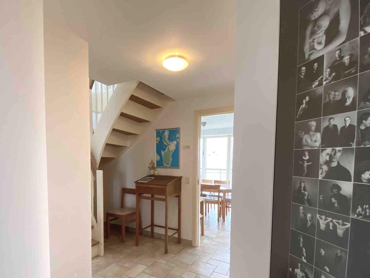 Außerdem gibt es eine Waschmaschine und einen Trockner am Eingang – praktisch, wenn der Urlaub ganz entspannt sein soll.