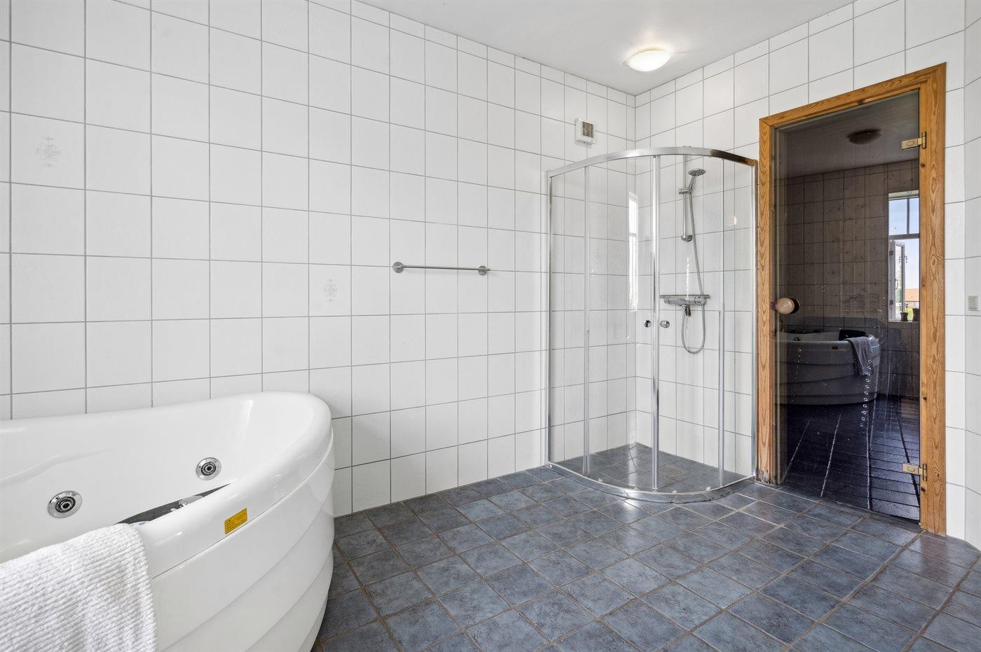 Es gibt 2 Badezimmer mit Duschnische und 2 Toiletten. Fußbodenheizung in 2 Badezimmern. Es steht eine Sauna zur Verfügung in der Sie sich so richtig entspannen können.