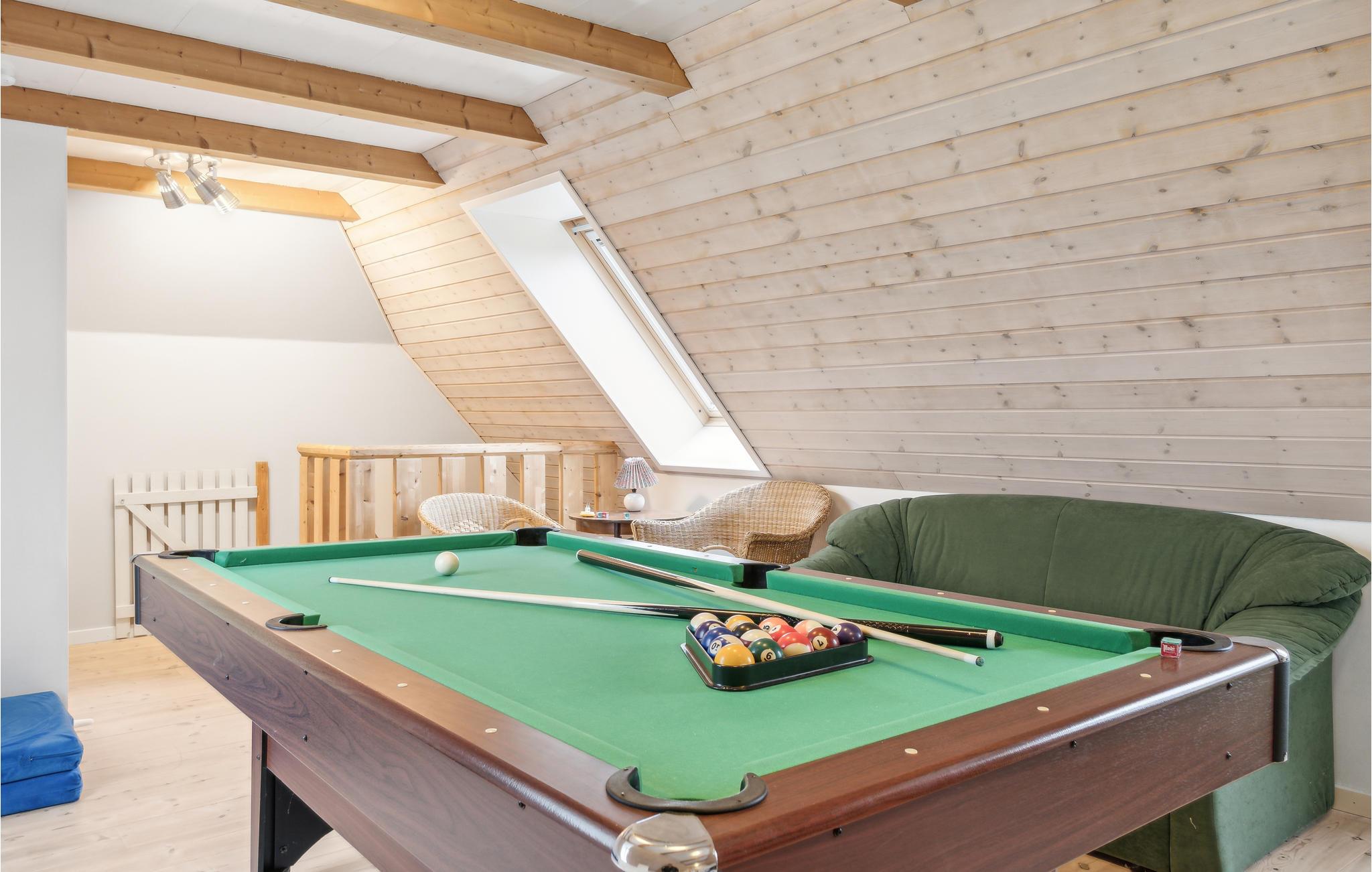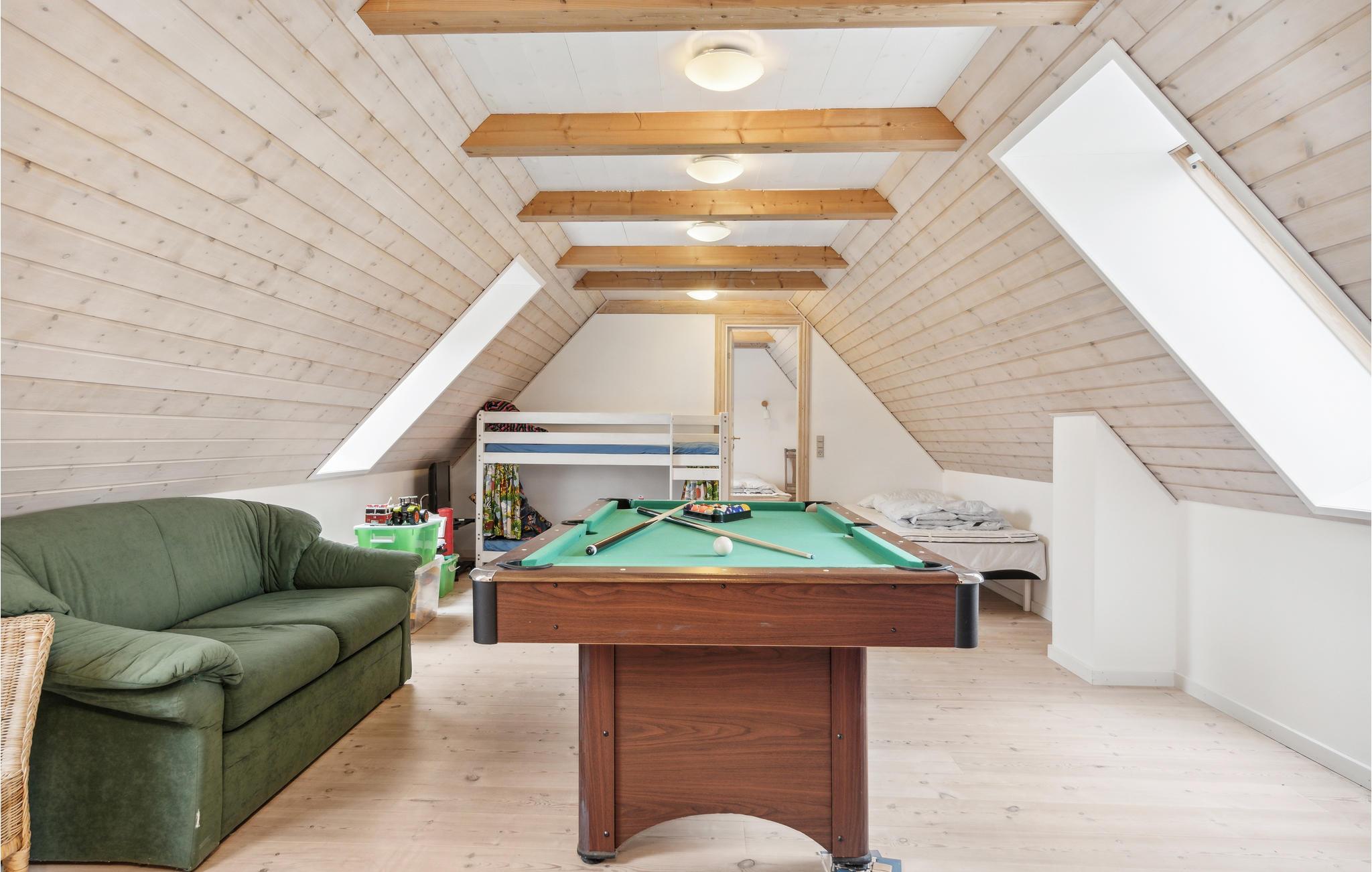 Freuen Sie sich auf dieses angenehme Haus, dass Ihnen viel Patz sowie Räume für Spiel und Spaß wie auch Entspannung bietet. Kommen Sie mit Ihrer Familie hier an und fühlen sich hier wohl. Der offene und helle Wohnbereich im Erdgeschoss verbrindet das Kochen in der Küche mit dem Spielen am Esstisch oder ruhigen Stunden auf dem Sofa. Im Obergeschoss erwarten Sie ein Unterhaltungsbereich mit Billard uns Spielen, wo Sie als Familie zusammenkommen können. Während Ihre Kinder im Spielzimmer Spaß haben, können Sie sich auch in die Whirlpool-Badewanne zurückziehen und zur Ruhe kommen.