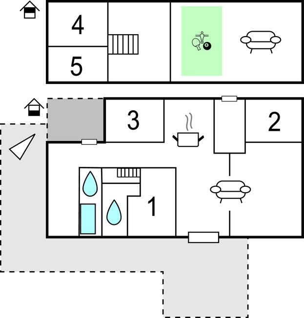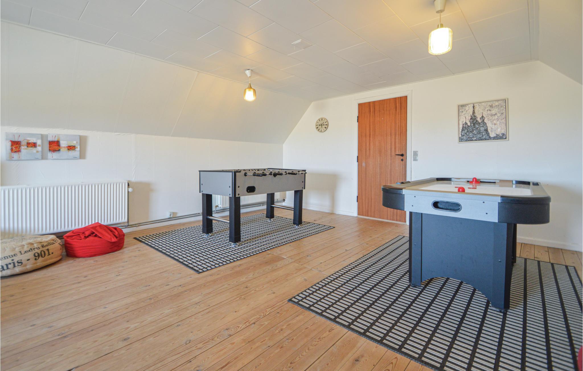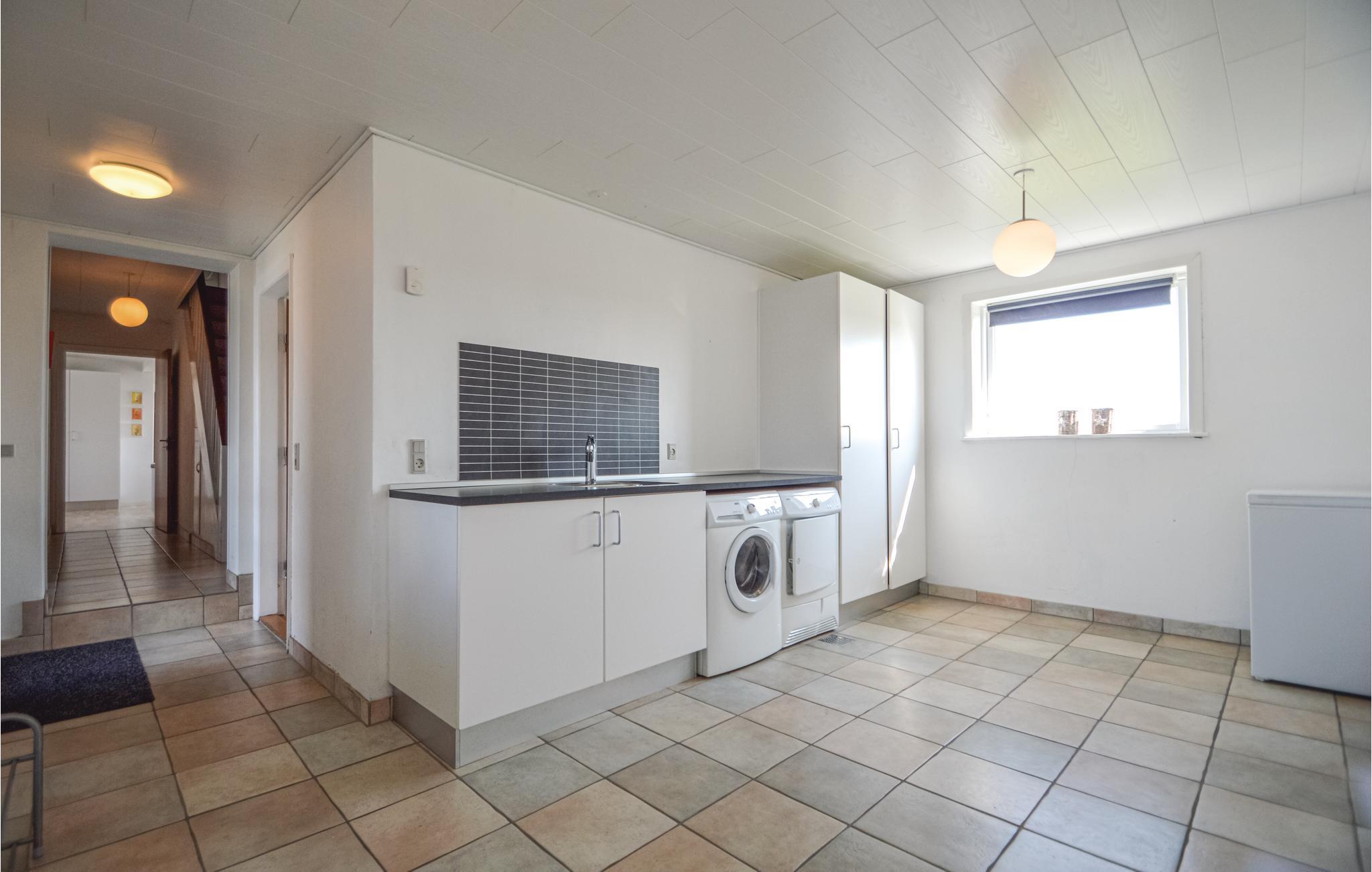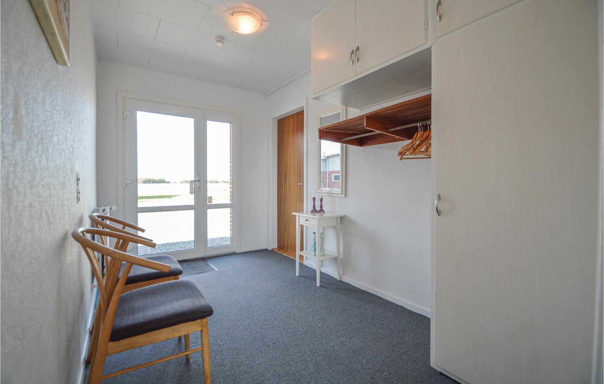 Das Ferienhaus wurde komplett renoviert. Alle Räume in diesem zweistöckigen Haus sind in hellen Farben gehalten, alles ist besonders freundlich und einladend gestaltet. Der große Raum im ersten Stock dient als Wohnraum, hier befindet sich auch der Fernseher. Im Erdgeschoss haben Sie die Wohnküche und direkt davor eine eingezäunte Terrasse, auf der Sie herrliche Stunden im Freien verbringen können. Sie blicken von hier schön auf das Watt und die regelmäßig zwischen Rømø und Sylt verkehrende Fähre. Im Garten sind ein Klettergerüst, eine Rutsche und ein Trampolin vorhanden. Östlich vom Haus liegt der Kystvejen.