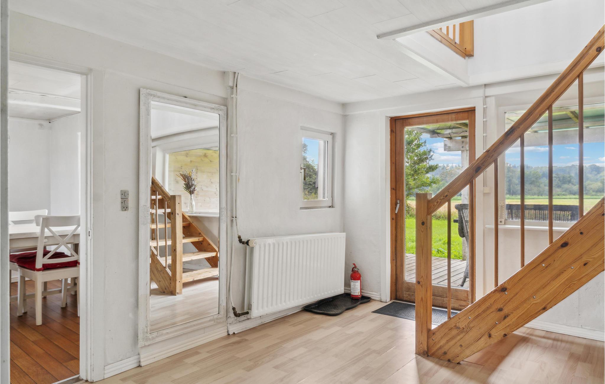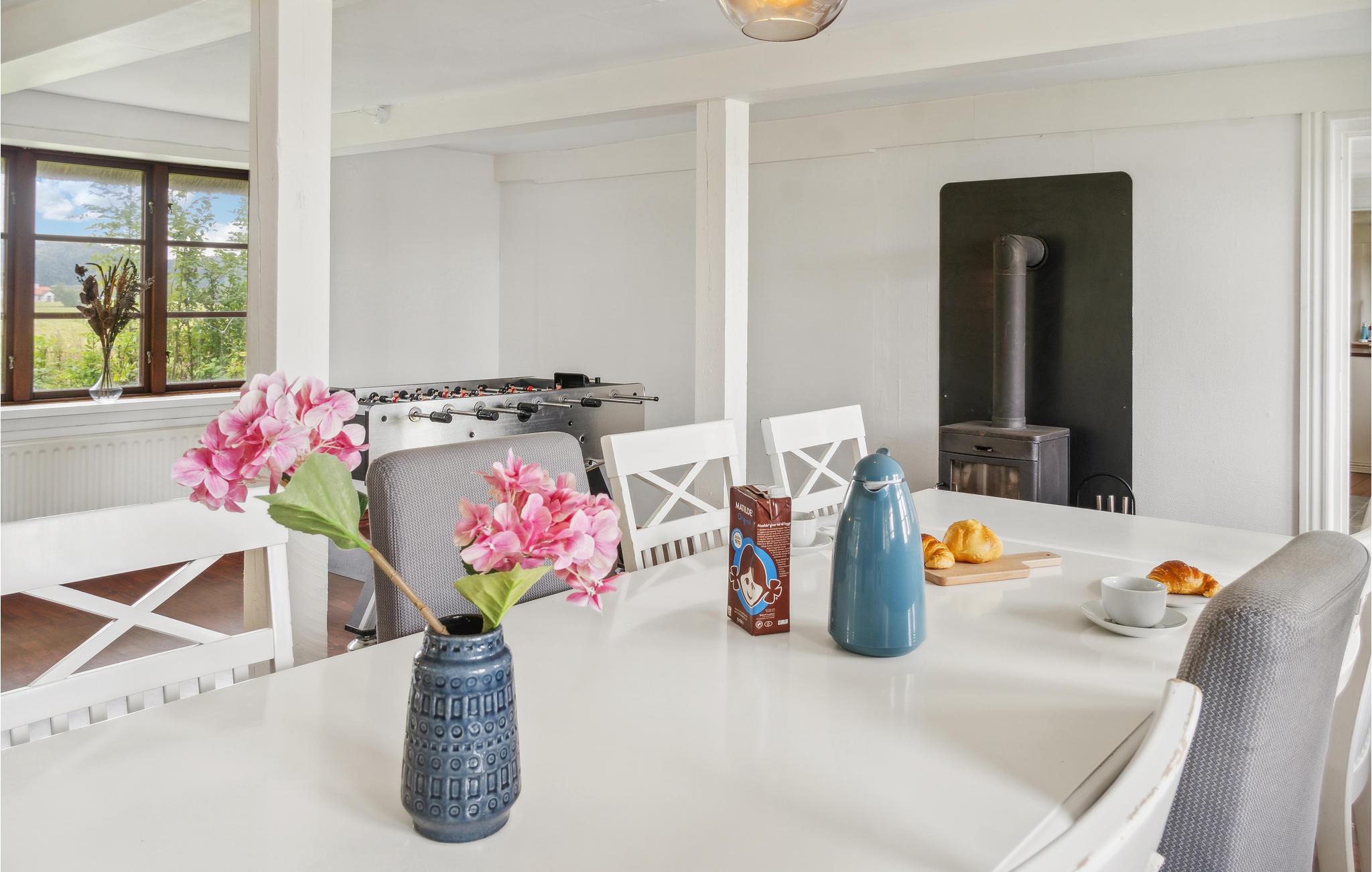 Das Haus begrüßt Sie in schöner Lage umgeben von Wiesen und Feldern, hier können Sie am frühen Morgen dem Zwitschern der Vögel lauschen und Wild beobachten. Im Inneren des einladenden Ferienhauses erwarten Sie angenehme Räume, die Ihnen alles bieten, um einen unbeschwerten Urlaub zu verbringen. Der Kaminofen sorgt an kühlen Tagen für Wärme und Gemütlichkeit, während Sie zusammen die Mahlzeiten am Esstisch einnehmen. Nach einem aktiven Urlaubstag locken die Sauna und die Whirlwanne zu schönen Wellness-Momenten. Die schöne Aussicht lässt Sie die Nähe zur Natur optimal wahrnehmen.