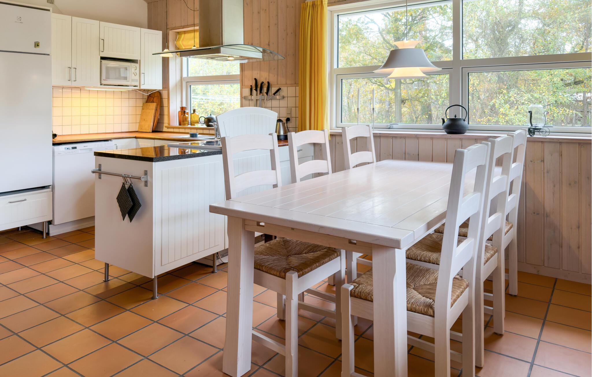 Dieses Haus überzeugt mit einem hellen und freundlichen Ambiente, in dem Sie sofort in den Urlaubsmodus schalten können. Eine gemütliche Sitzgruppe vorm Fernseher, eine praktische Küche und ein rustikaler Esstisch sorgen dafür, dass Sie sich schnell wie zuhause fühlen. Verbringen Sie schöne Filmabende, hören Sie Ihre Lieblingsmusik oder bereiten Sie ein schmackhaftes Menü für sich und Ihre Lieben zu.