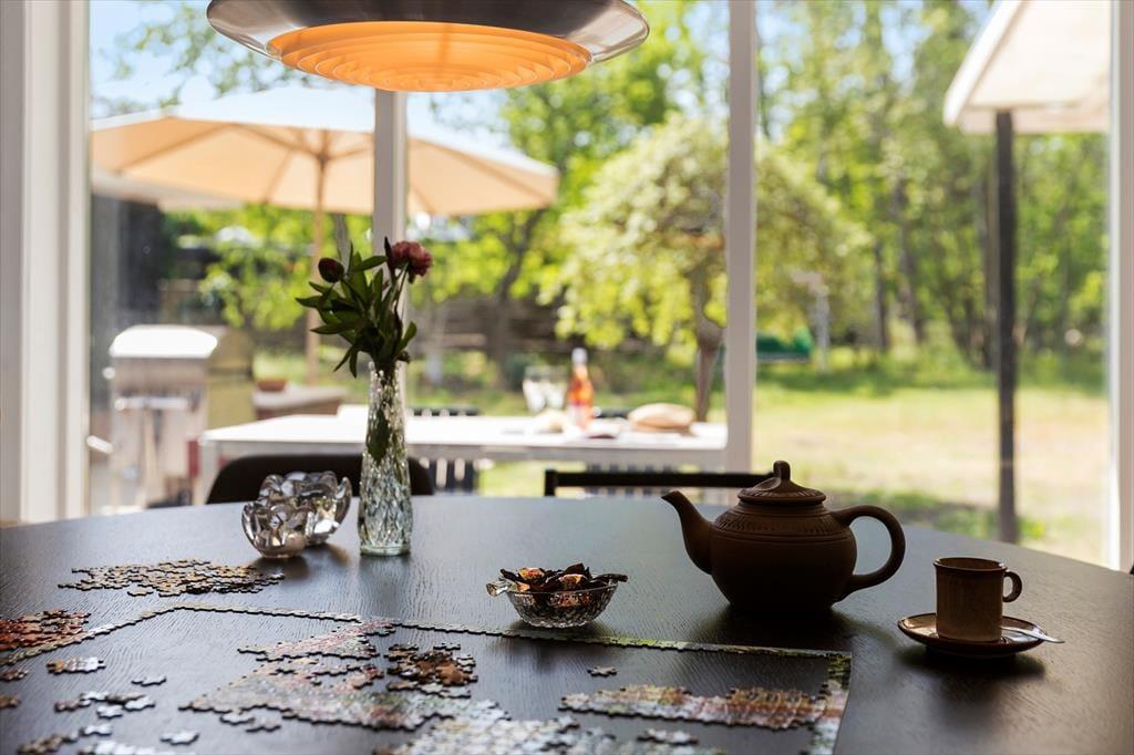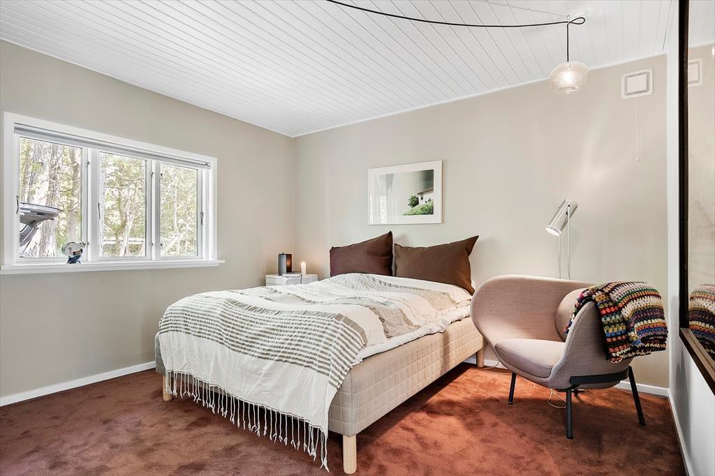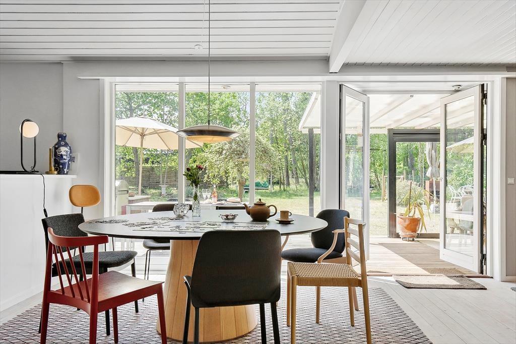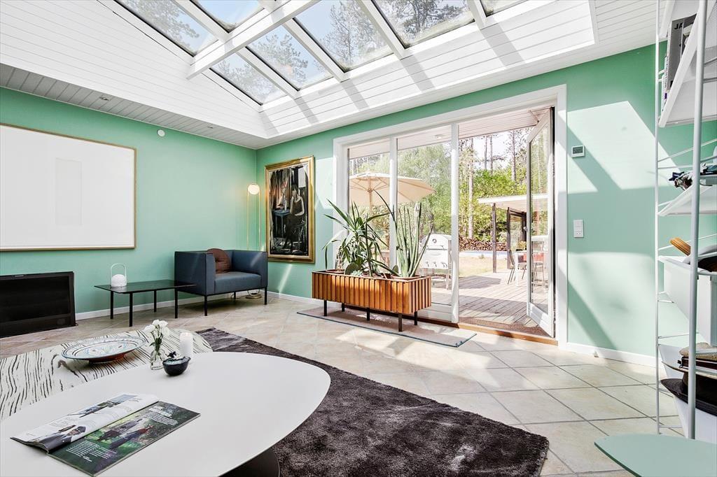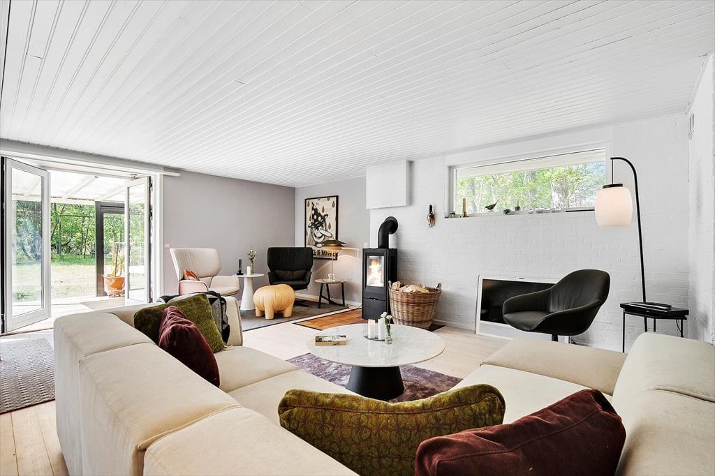 Freuen Sie sich auf dieses gemütliche, helle und toll renovierte Ferienhaus, das mit seinen Kunstgegenständen, den Teppichen und Möbelstücken sowie den außergewöhnlichen Lichtquellen ausländischer Hersteller zu beeindrucken weiß. Das gut eingerichtete Mietobjekt beherbergt eine große Küche, die offen mit dem Wohnraum verbunden ist. Sie verfügt über einen Einbaubackofen, Kochplatten, einen Geschirrspüler und einen Kühl- und Gefrierschrank. Der stimmungsvolle große Wohnraum bietet einen Zugang zur Terrasse, einen Kaminofen, einen gemütlichen Essplatz, ein Ecksofa, Sessel und einen Smart-TV, die ermöglicht Ihnen die Nutzung Ihrer privat abonnierten Streamingdienste. Ein zweiter, separater Wohnraum grenzt an zwei der Schlafräume. Er verfügt über hohe Decken, eine große Glaspartie und einen Zugang zur Terrasse. Ihnen stehen insgesamt drei Schlafräume zur Verfügung. Einer der Räume beinhaltet ein Doppelbett. In den anderen beiden Räumen stehen jeweils zwei Einzelbetten bereit. Beide Badezimmer des Hauses sind mit einer Duschnische und einer Fußbodenheizung versehen. Der Hauswirtschaftsraum beinhaltet eine Waschmaschine und einen Wäschetrockner. In der Werkstatt ist ein zusätzlicher Kühlschrank untergebracht. Sie beheizen das Urlaubsdomizil über eine Fußbodenheizung, die mittels einer Luft-zu-Wasser-Wärmepumpe betrieben wird. Für gemütliche Wärme im Wohnraum sorgt zudem ein Kaminofen.