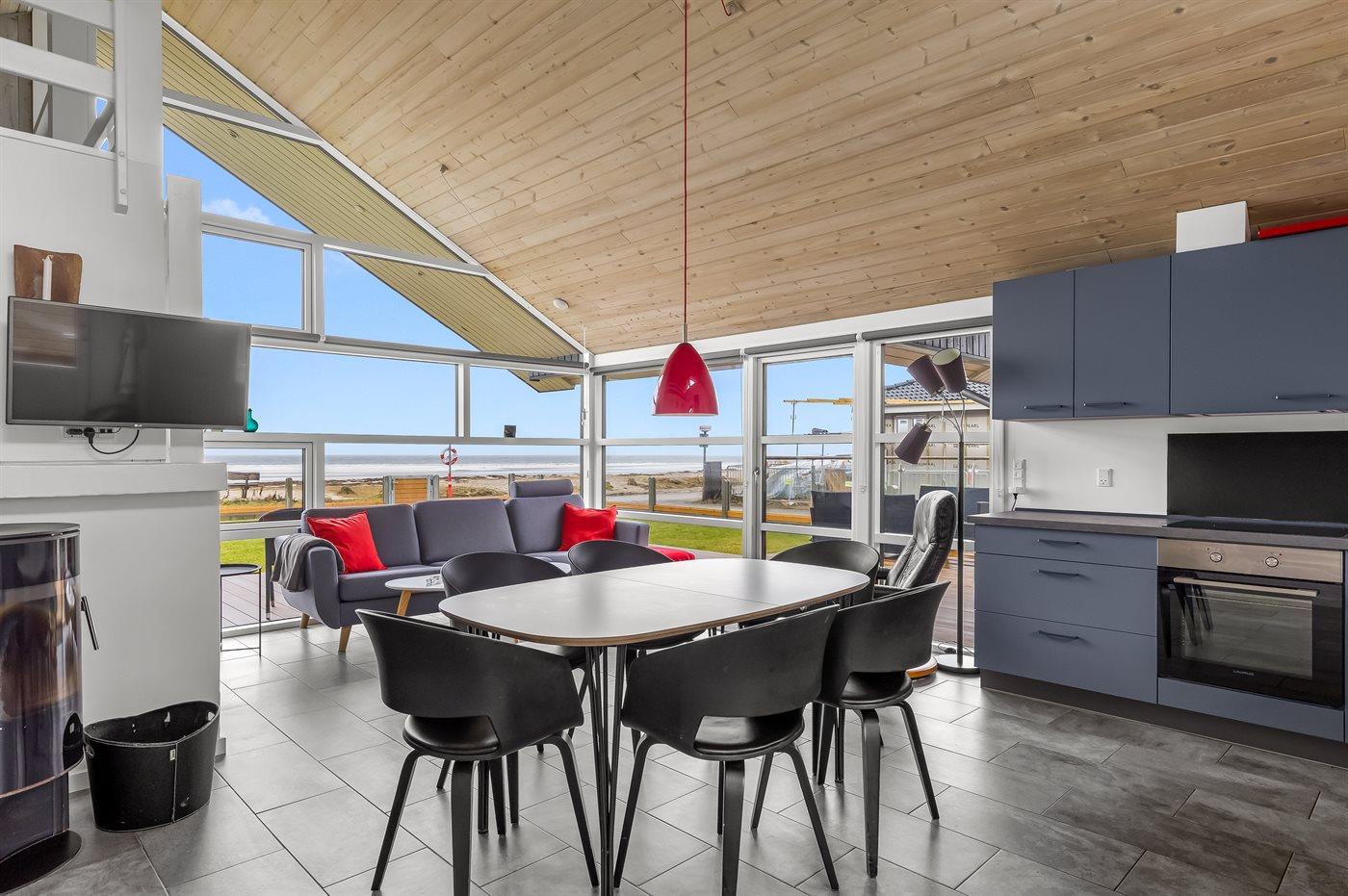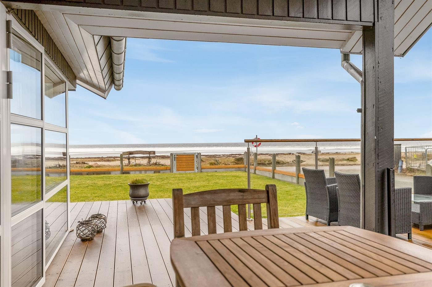 Hier findet ihr das ideale Ferienhaus für euren nächsten Urlaub – ein Ort, an dem sofort echtes Feriengefühl aufkommt. Das Haus liegt einzigartig, nur zehn Meter vom schönen Strand im begehrten Gebiet von Binderup Strand entfernt. Sowohl vom Haus als auch von den Terrassen und dem Garten könnt ihr einen herrlichen Panoramablick über das Meer genießen und das Leben auf und am Wasser von morgens bis abends beobachten. Eine perfektere Lage kann man sich kaum vorstellen.