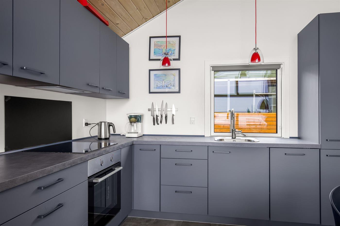 Die Küche ist mit Kühlschrank ausgestattet. Außerdem gibt es 4 Induktions-Kochzonen, Umluftofen sowie Geschirrspüler. Fußbodenheizung in der Küche.