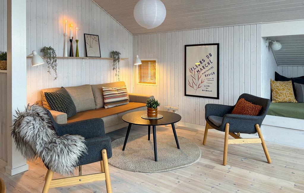 Dieses Ferienhaus strahlt Wärme, Gemütlichkeit und Stil aus. Der Kaminofen verbreitet eine wohlige Atmosphäre, während große Fenster viel Licht hereinlassen und den Blick auf die Umgebung öffnen. Umgeben von weichen Stoffen, warmen Farben und liebevollen Details fühlen Sie sich schnell wie zuhause. Ob beim Lesen in der Fensternische oder bei einem Glas Wein am Kaminfeuer – hier fällt es leicht, zur Ruhe zu kommen und den Alltag zu vergessen.