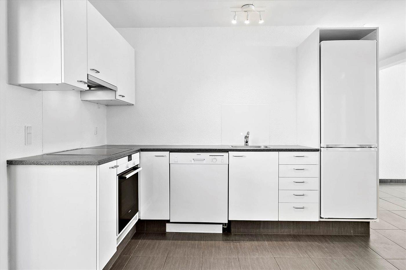 Die Küche ist mit Kühlschrank ausgestattet. Außerdem gibt es 4 Keramik-Kochfelder, Umluftofen sowie Geschirrspüler.