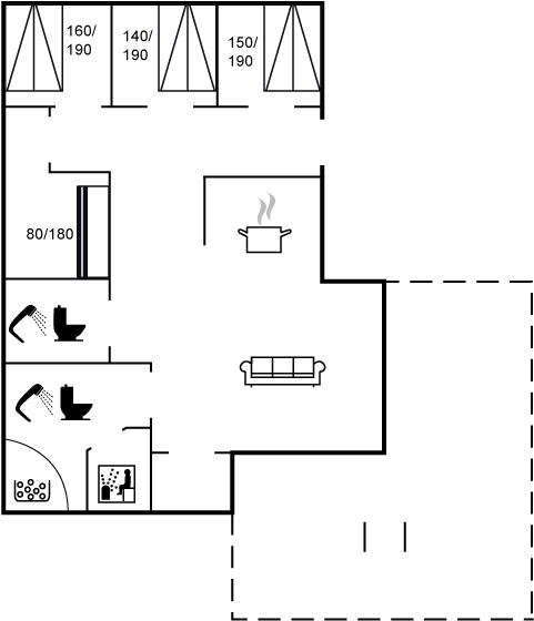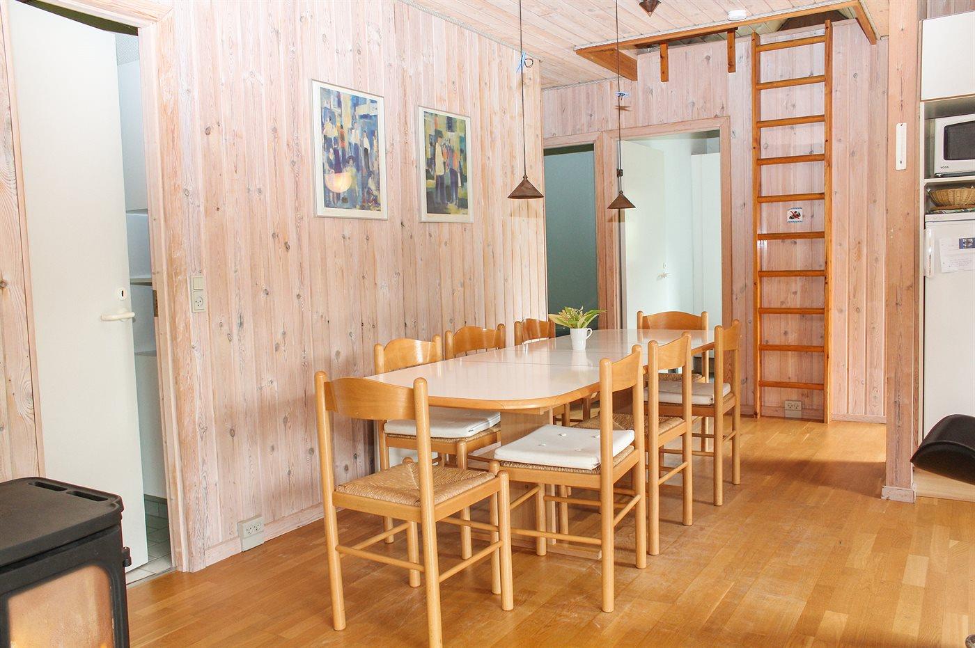 Das Ferienhaus eignet sich für 8 Personen sowie 1 Kleinkind bis zu 3 Jahren. 2 der Schlafplätze eignen sich jedoch nur für größere Kinder (4-11 Jahre). Die Ferienunterkunft hat eine Wohnfläche von 86 m² und wurde 1995 gebaut. Es ist erlaubt 1 Haustier mitzubringen. Die Ferienunterkunft ist mit Waschmaschine ausgestattet. Wäschetrockner. Tiefkühlmöglichkeit mit 10 Liter Nutzinhalt. Es gibt außerdem einen Kaminofen. Für die jüngsten Feriengäste ist 1 Kinderhochstuhl vorhanden.